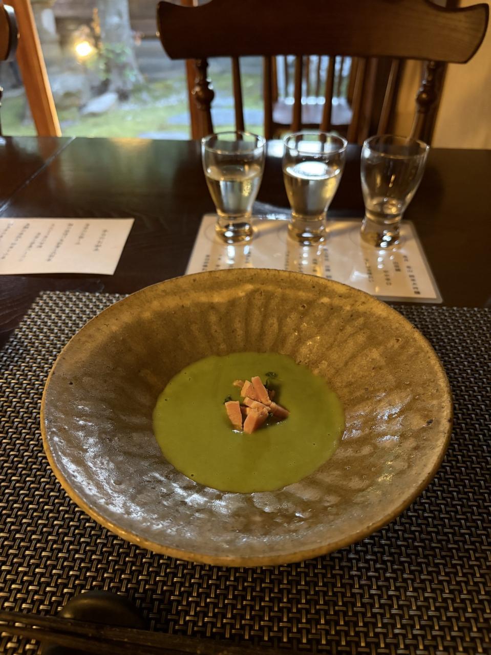 えんどう豆の甘酒 豆苗と米藁ベーコン 甘酒がちょっと苦手だったからか、これはあまり好みの味では無かったな。