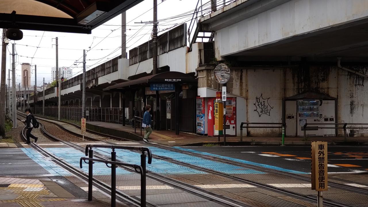 路面電車の新中華街の駅、長崎駅に帰るにはここで乗り換えます。路面電車もクレジットカードで乗れるのでとっても便利です。」