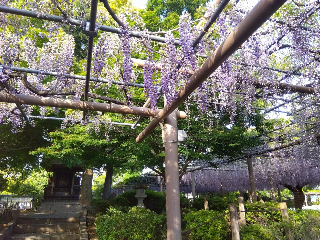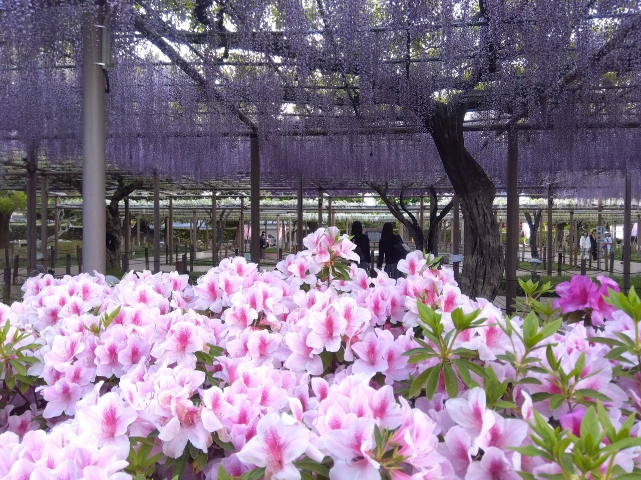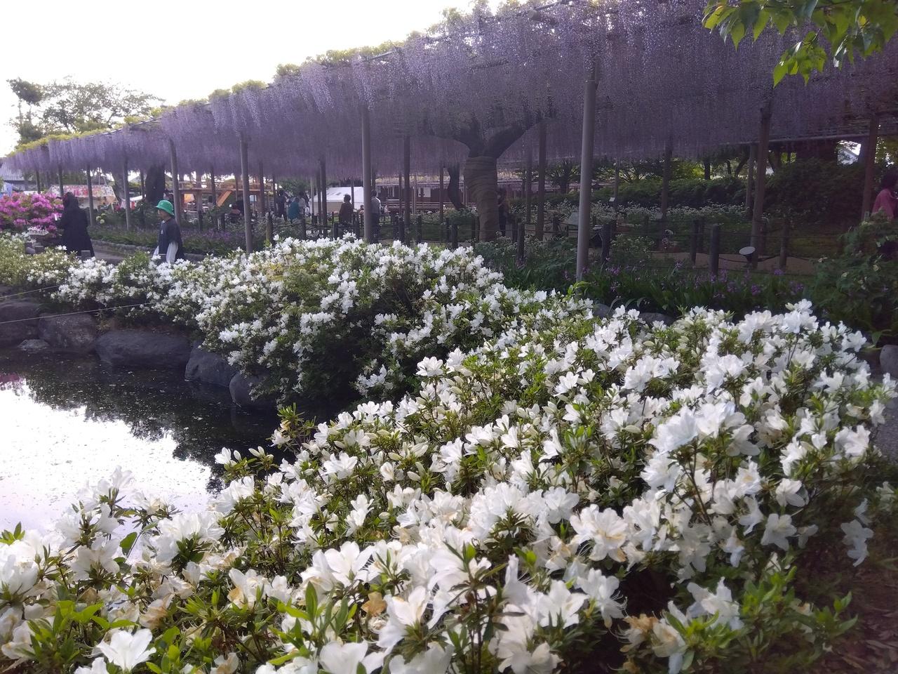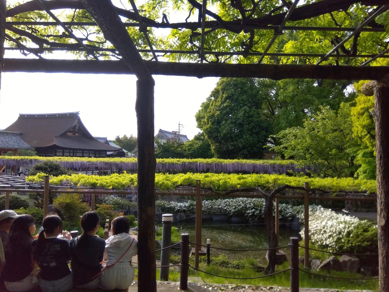 曼荼羅寺公園の藤まつりで藤の花が満開になってきました。藤棚の面積はかなり広いです。今日は平日であまり開いていなかったが屋台がたくさん出ています。