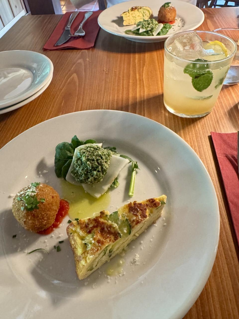 前菜は、セイイカとライスリゾットコロッケとオムレツ