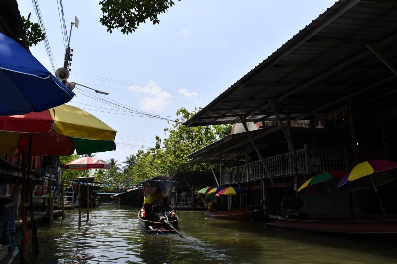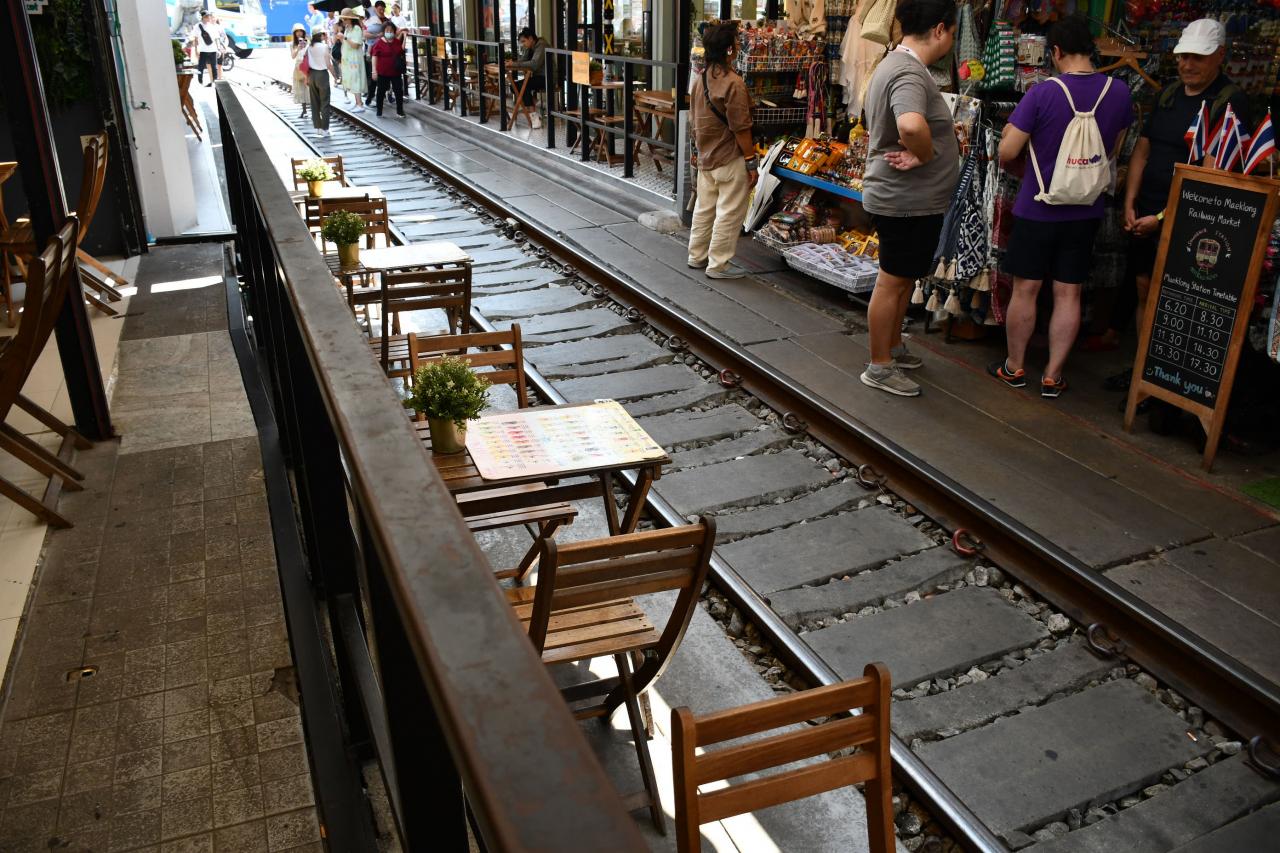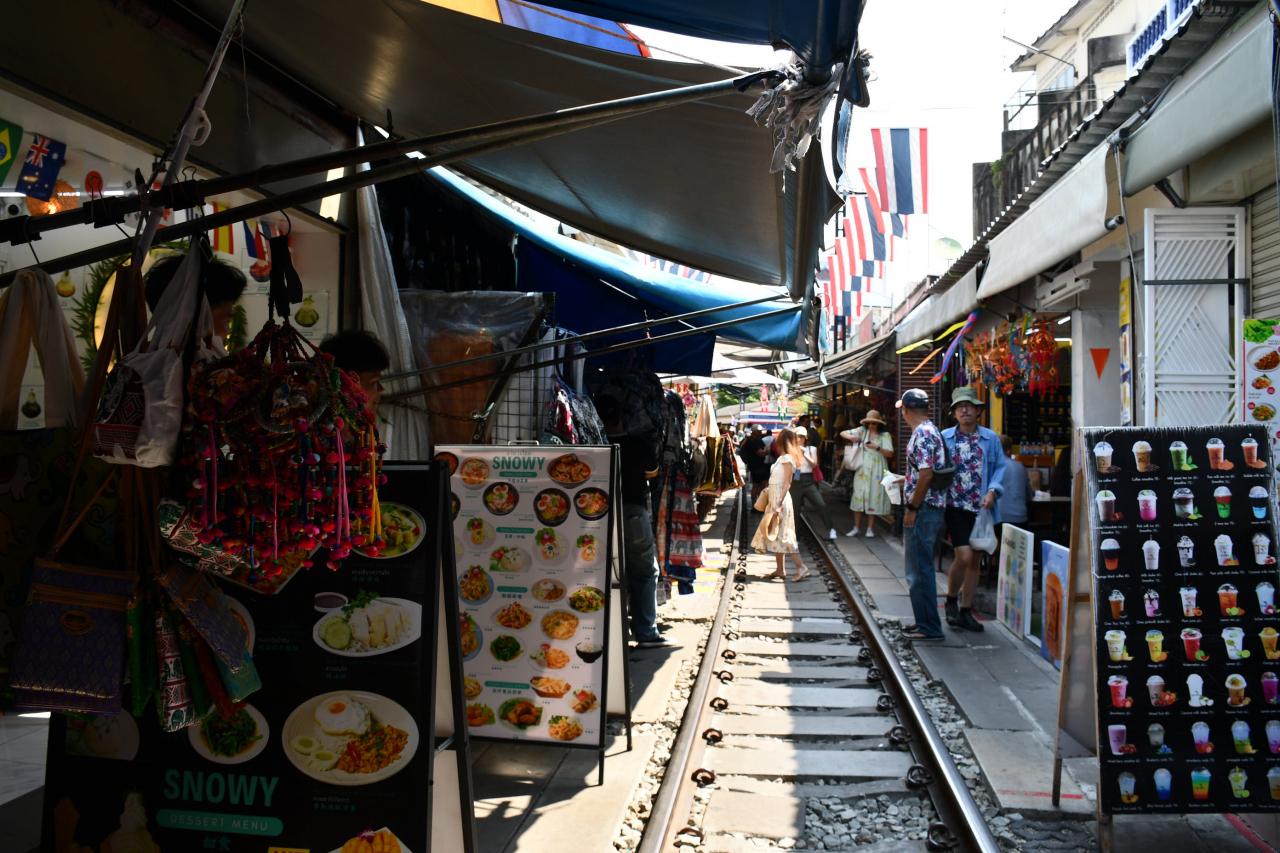 バンコクから日帰りでメクロンの線路市場とダムヌンサドゥアックの水上市場に行ってきました。メクロン駅は一日二往復、四便の列車が発着するようです。通常は線路の際まで商品を並べていますが、列車の自国が近づくと商品を取り込んで線路を開けます。それが名物になっています。