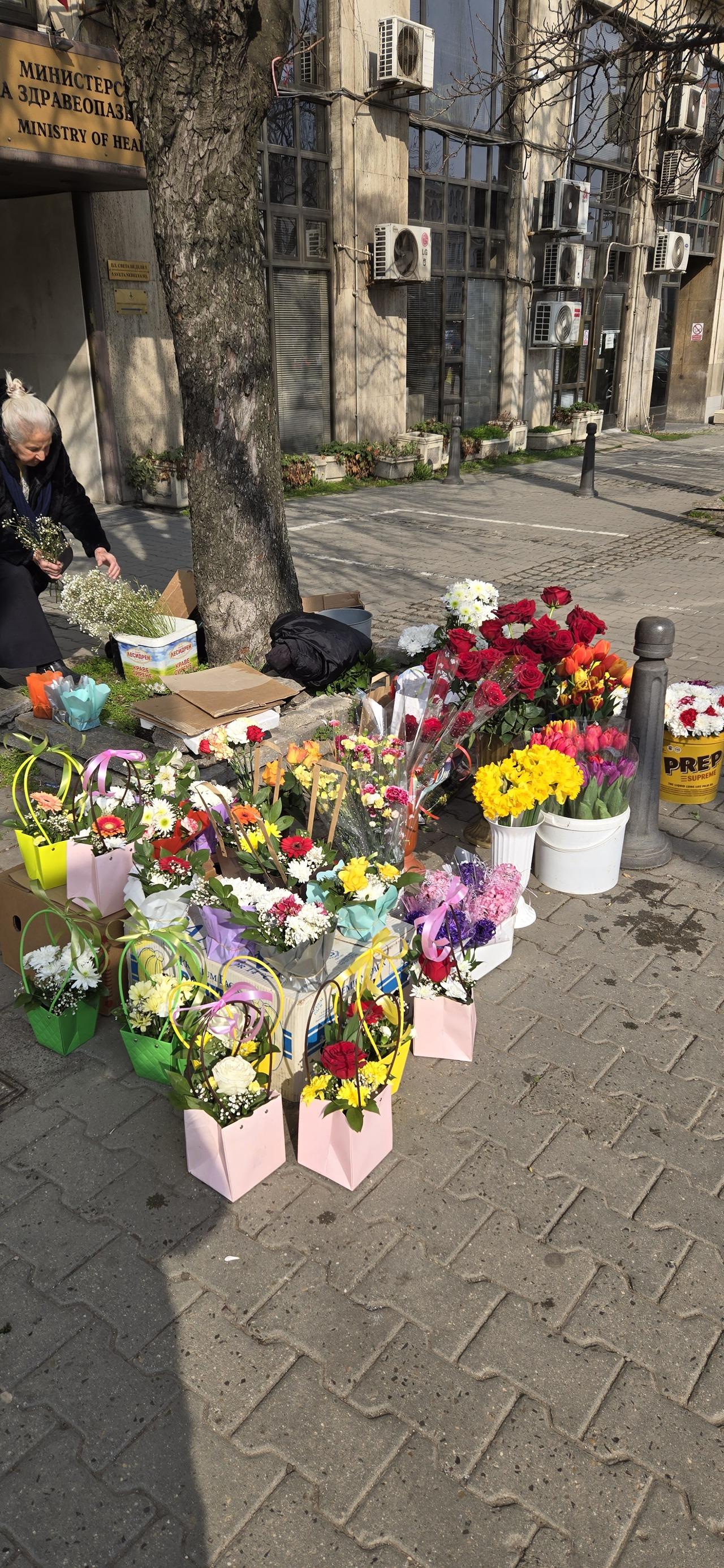 ルーマニア正教会を出て、次にブルガリア旧共産党本部ビルを目指して歩きました。写真は途中で見かけた路上の花売りです。