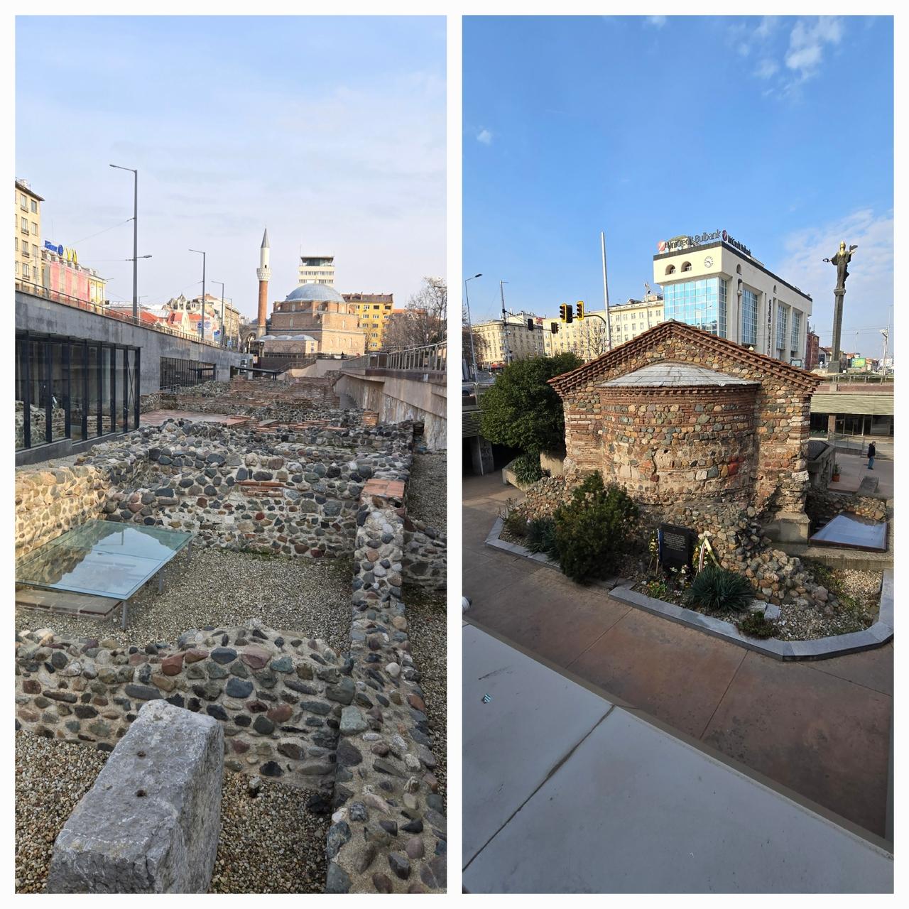 Serdika駅のすぐ近くです。右が聖ペトカ教会で左がローマ時代の遺跡です。両方とも写真を撮っただけでした。