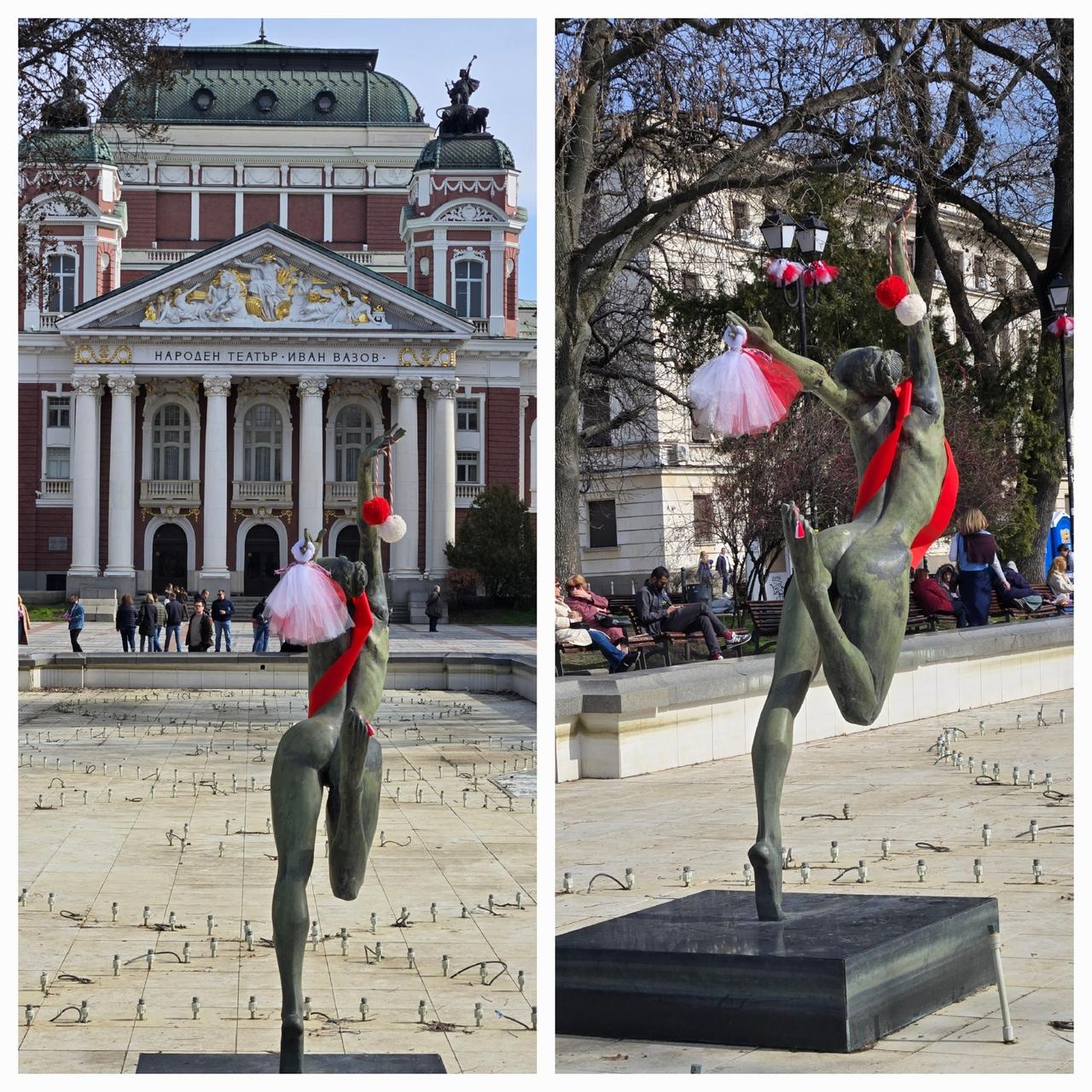 歩き疲れたため、イヴァン・ヴァゾフ国立劇場の前の公園で一休みしました。写真は、不安定な格好で立っている裸婦像です。