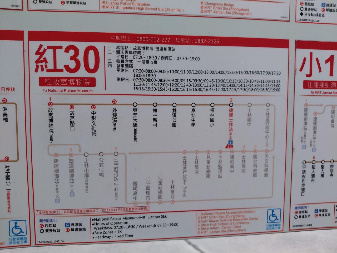 士林駅まで行って、士林から紅30のバス。正面玄関まで行くのは紅30のバスだけで、それ以外はバス停からかなり歩く模様です。士林駅 駅