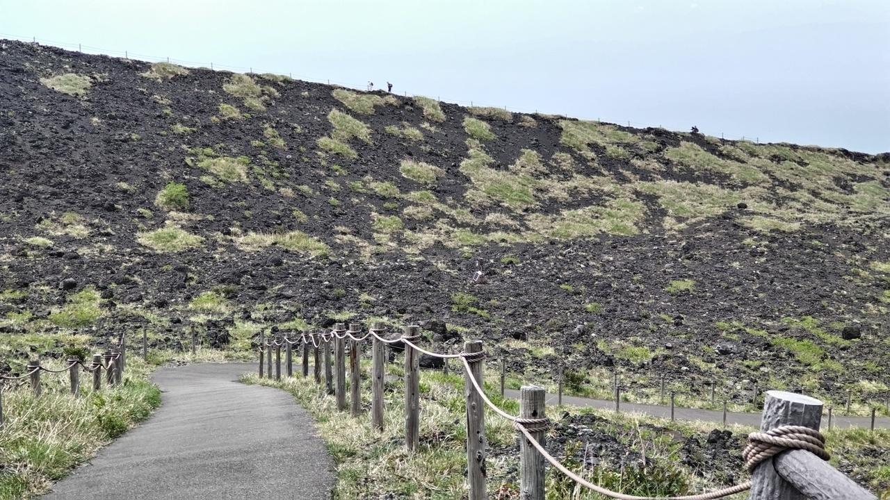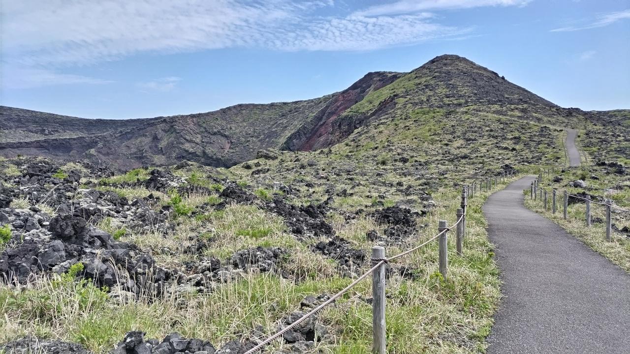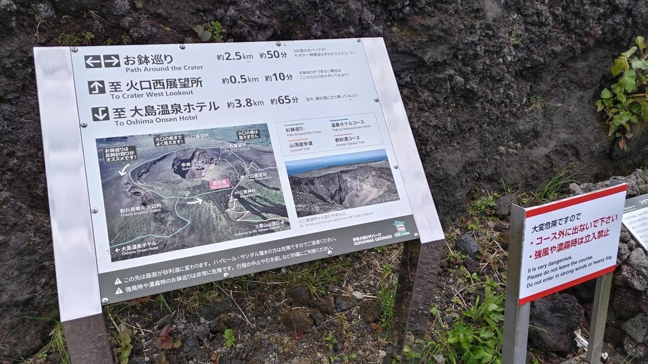 「お鉢巡り」は時間の関係で難しいし、道も舗装ではないので「火口西展望所」へ。三原山 自然・景勝地