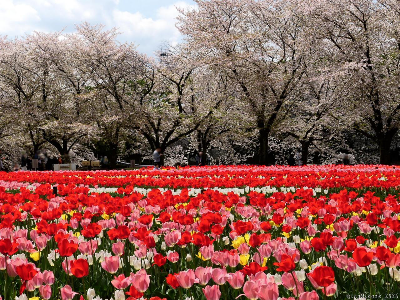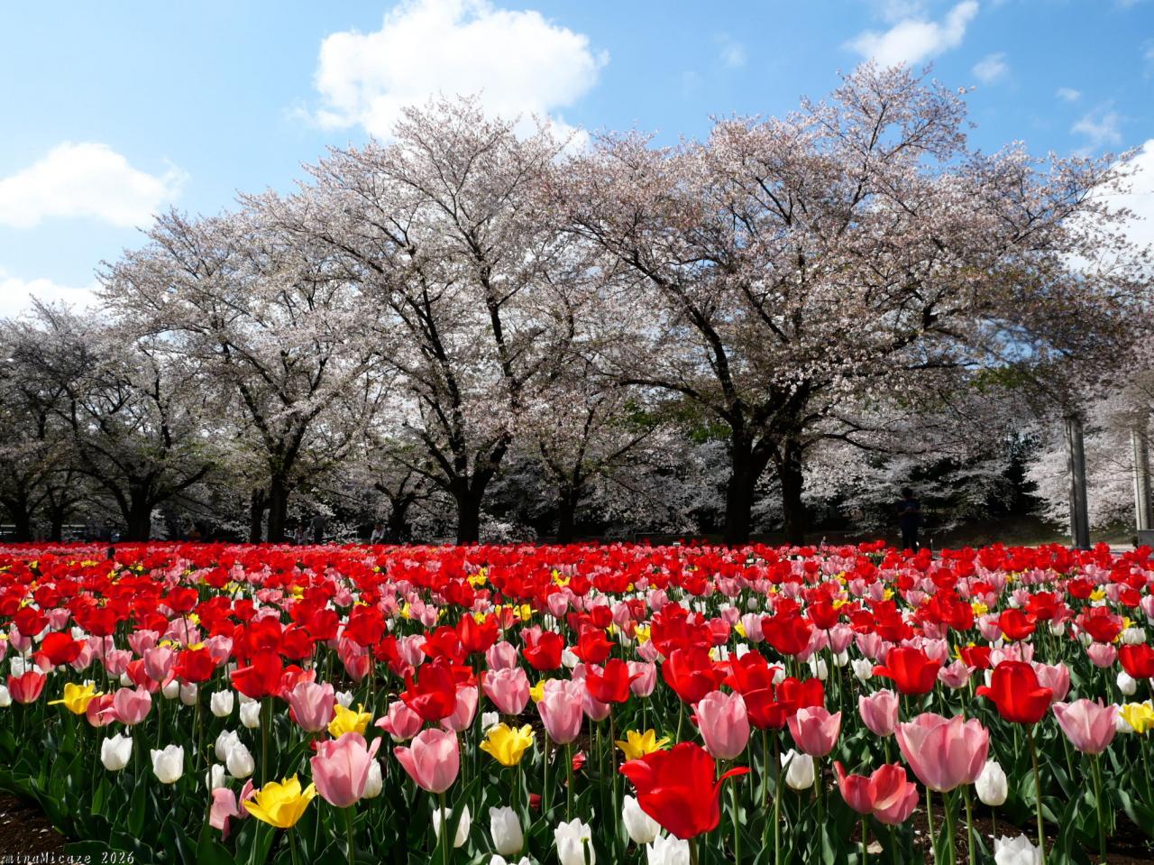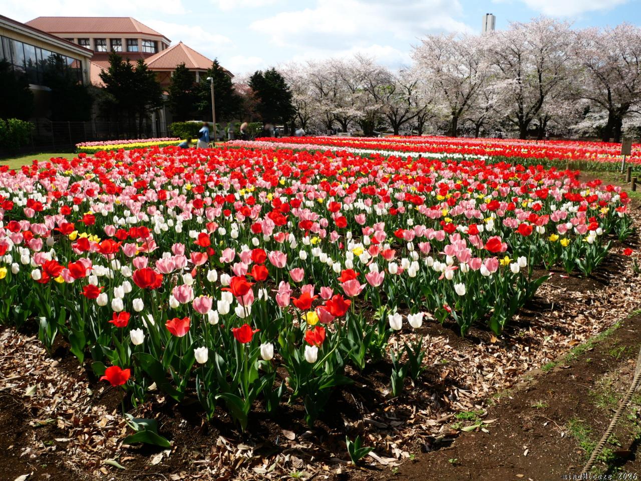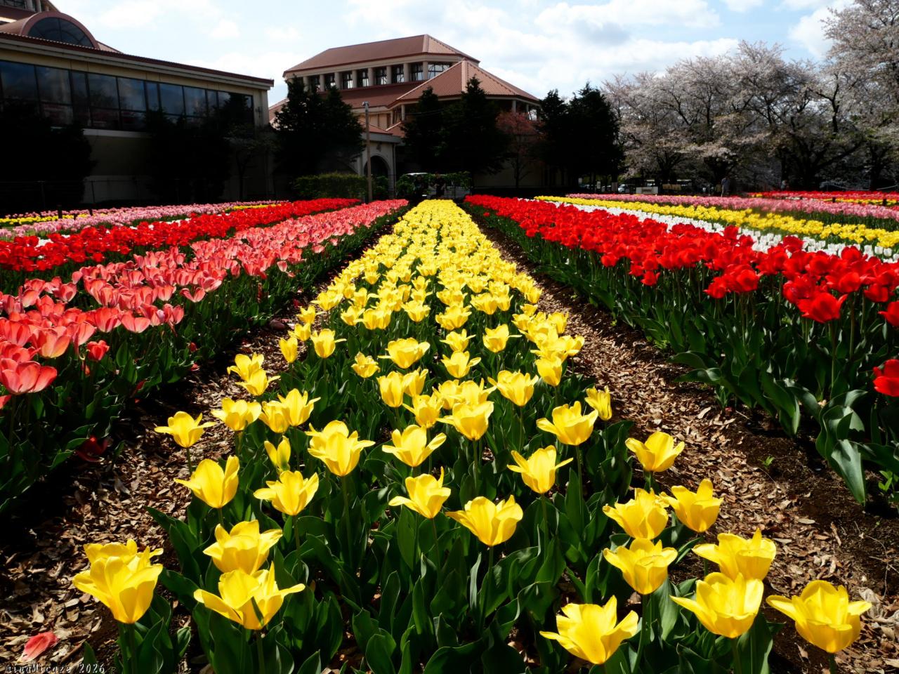 サクラとチューリップ、良いタイミングで見られました。