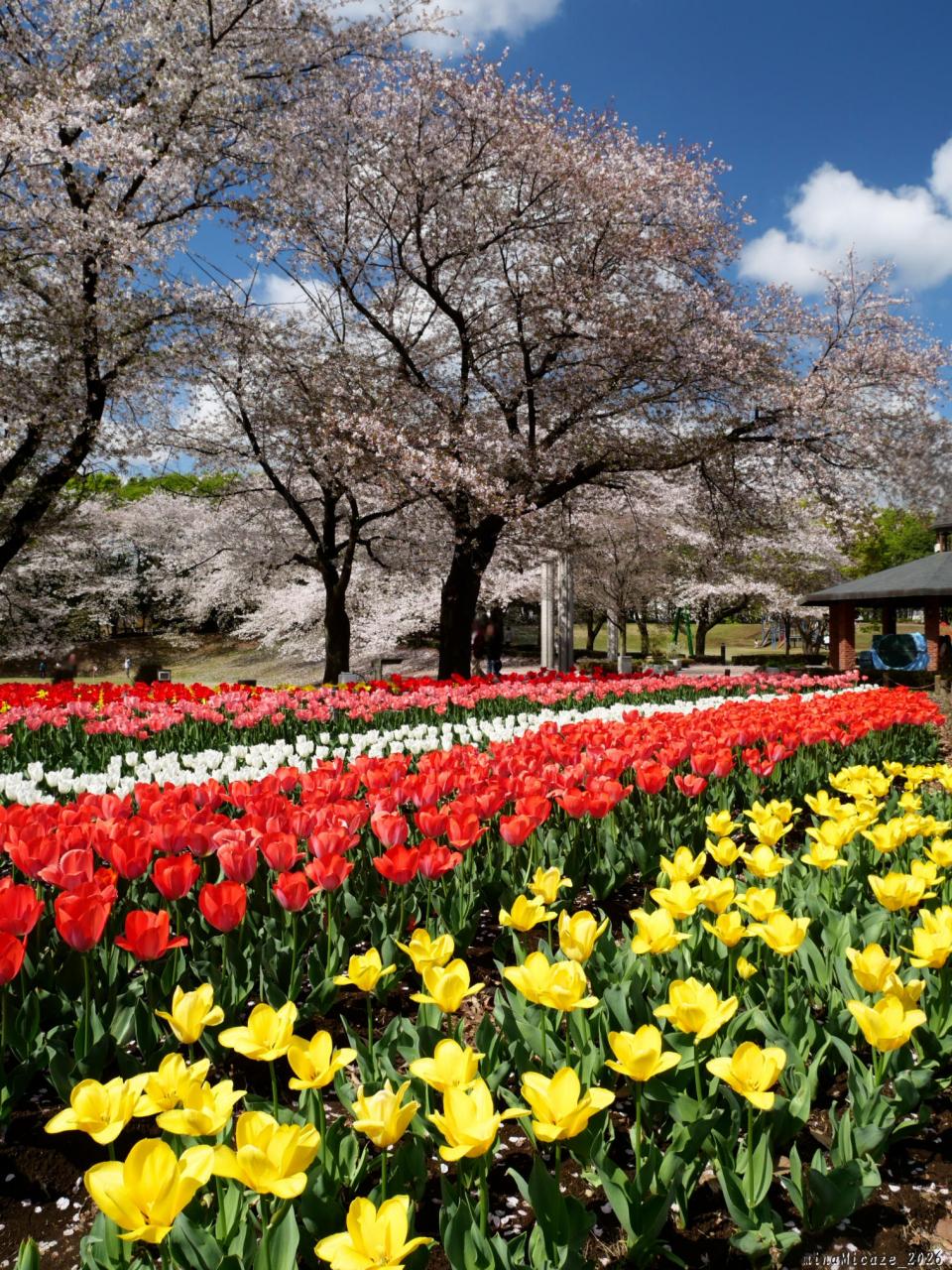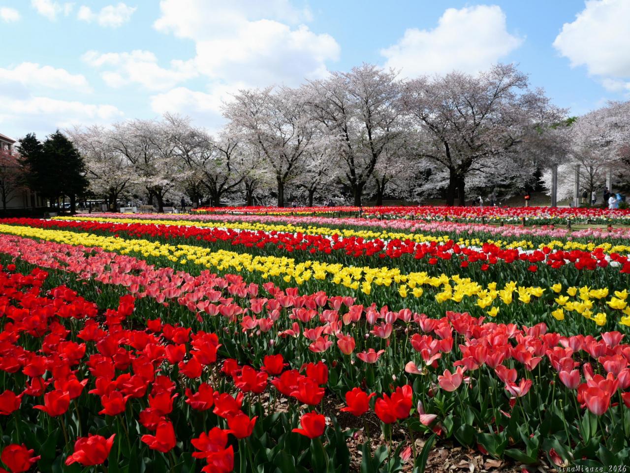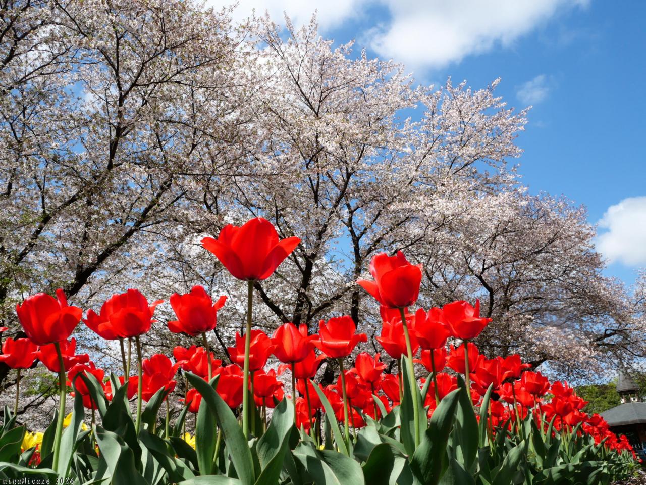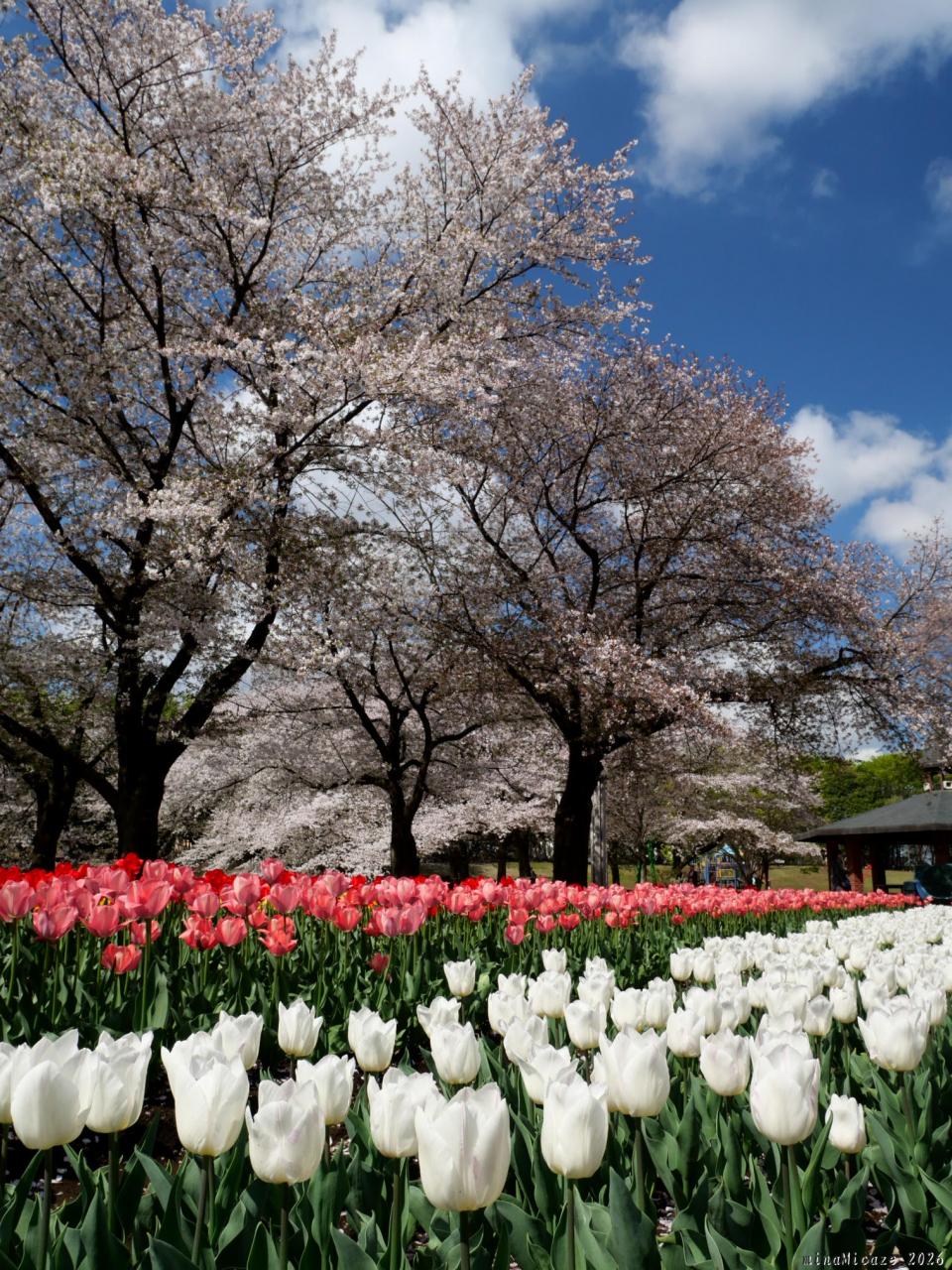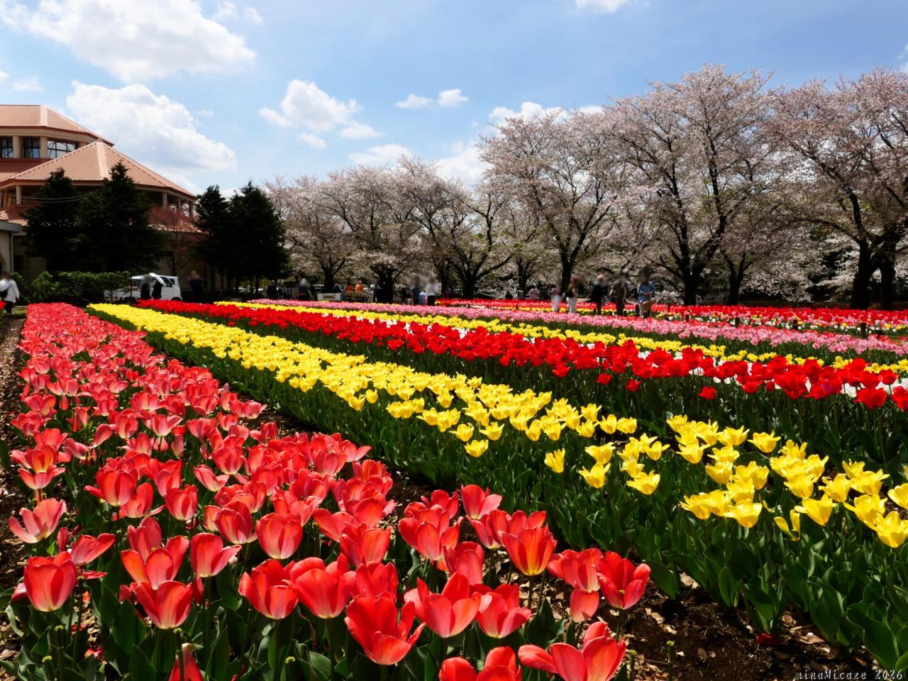 サクラとチューリップ、良いタイミングで見られました。