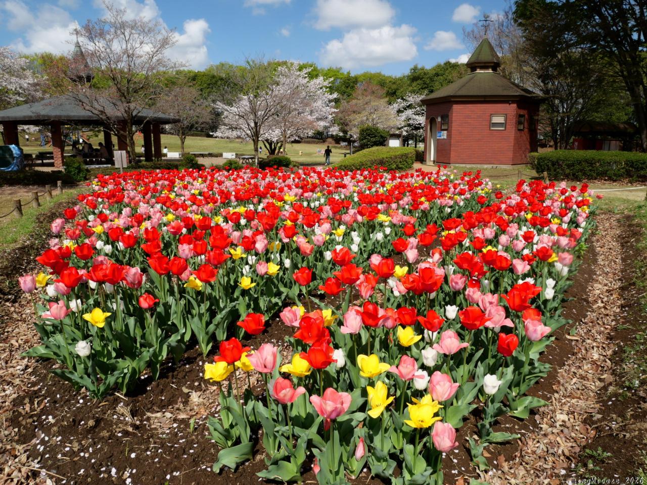 広大なチューリップ畑ではありませんが、地元の人の憩いの場所になっていると思います。