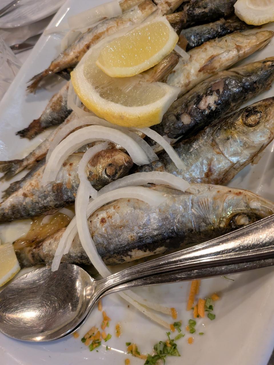 ランチは「バカリャウのコロッケ」と「イワシのグリル」デカいイワシを堪能。シンプルな味付けでおいしかった