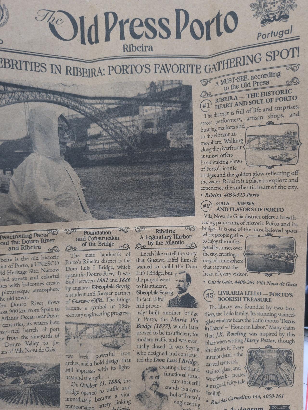 ランチ後、外に出たら雨。ドウロ川を眺めていたら、可愛いお姉ちゃんから1枚の号外新聞みたいなものを渡された。