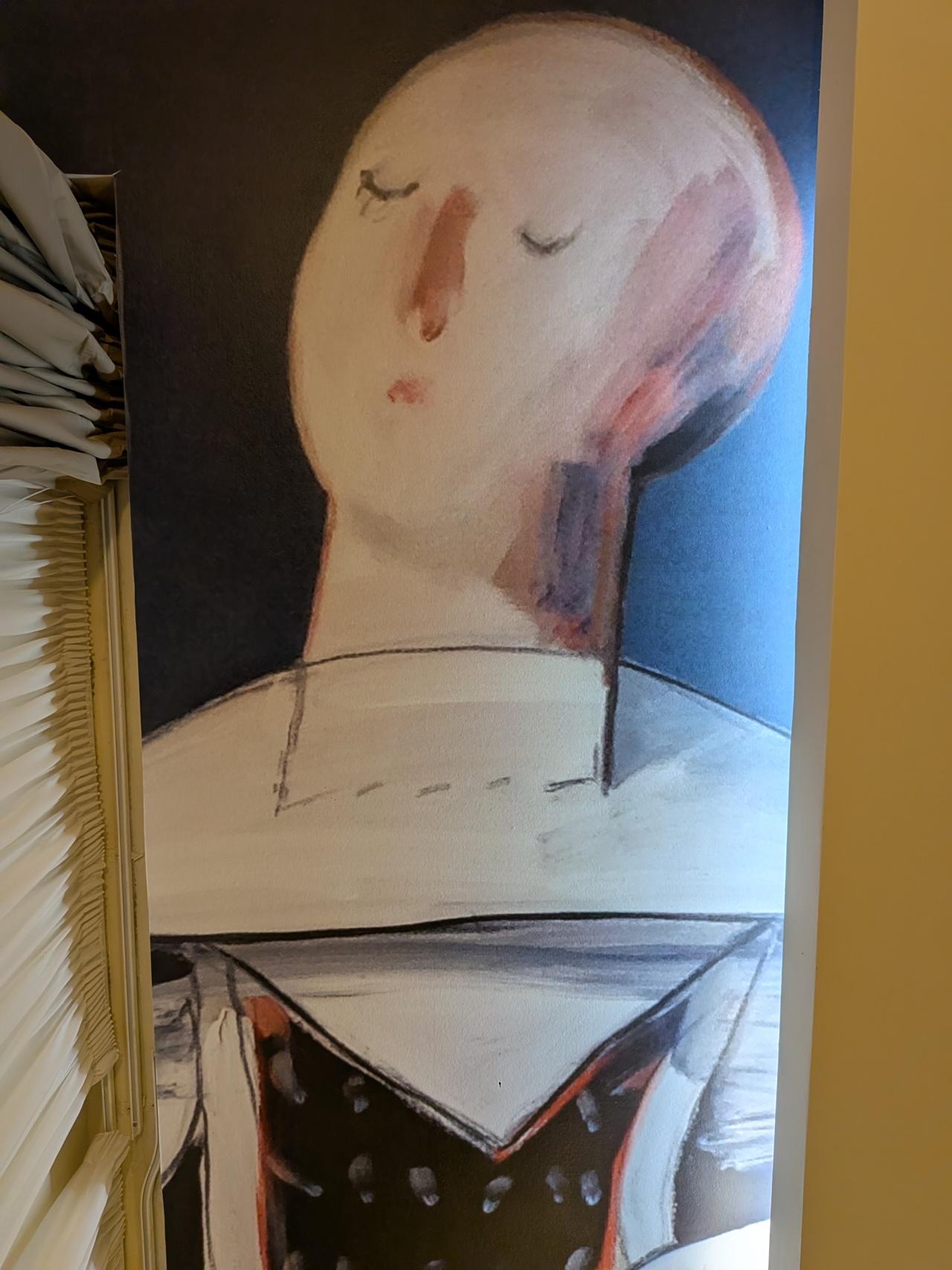 18世紀の貴族の館を改装した5つ星ホテルキンタ・ダス・ラグリマス。ポルトガルのロミオとジュリエット的な悲劇の王妃のお話で有名。でも、この絵がどこにあるかというと、お部屋のベッドの天井!寝転がったら券を首に刺された王妃の絵って(笑)
