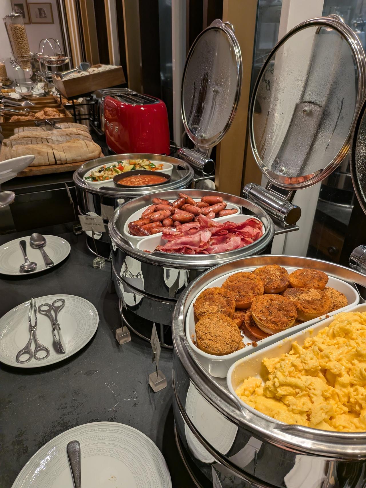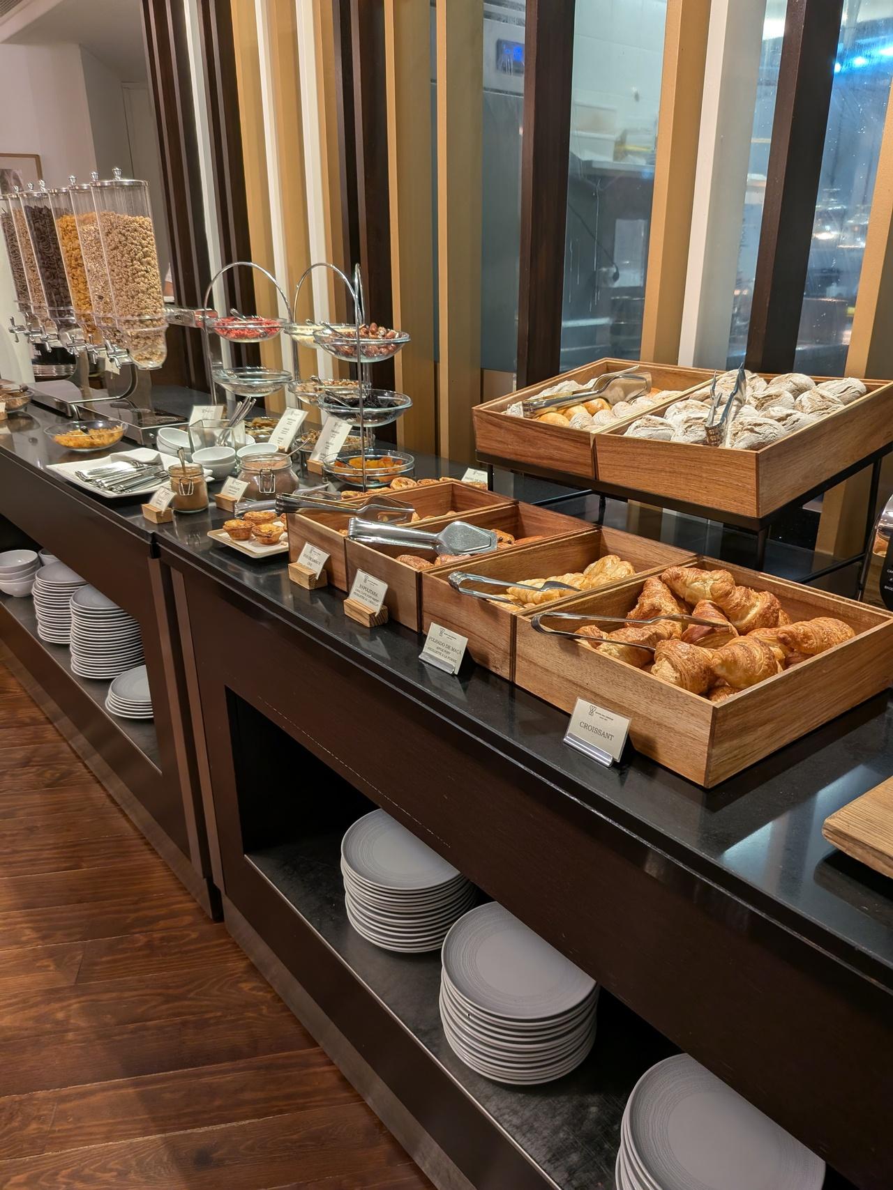 翌日の朝食開場にて。たくさん並んだパンとかペイストリー