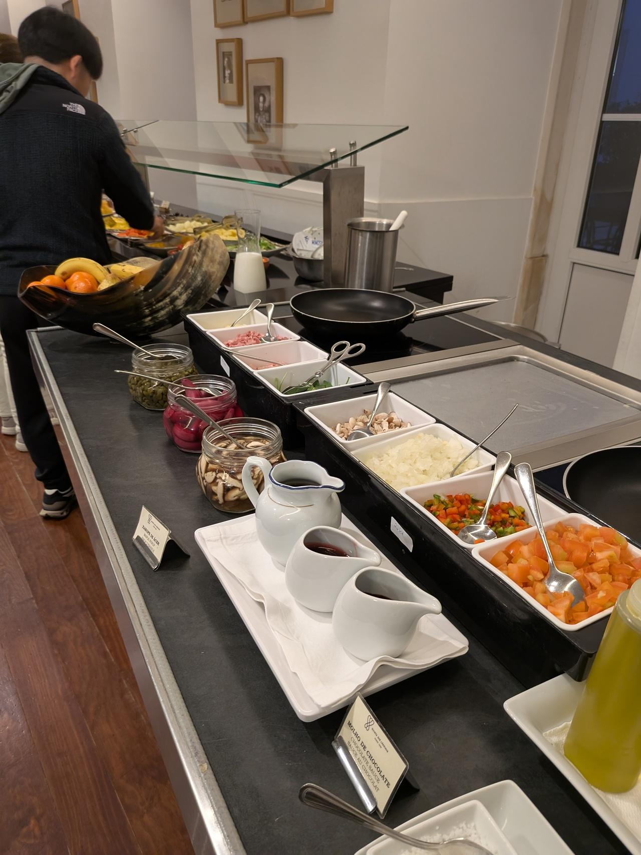 迷ったけど、シェフにオムレツ(具材もリクエストできる)を頼んでこんな感じ。中庭を眺めながらゆったり朝食タイム