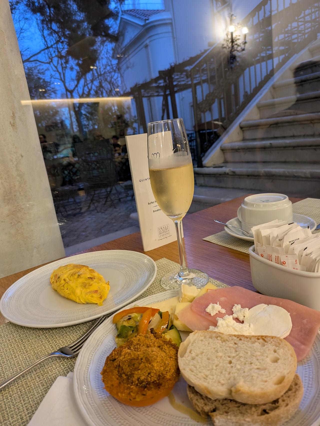 朝からスパークリングワインもあったりして