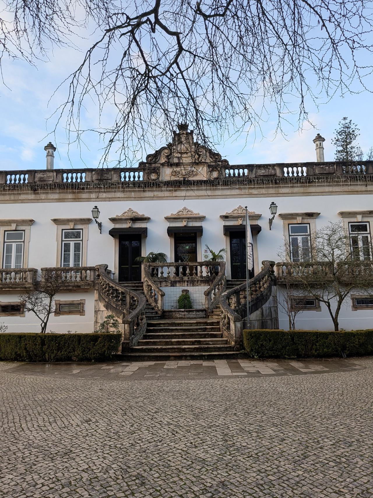 朝のキンタ・ダス・ラグリマスのエントランス。今から王妃の涙の泉に向かって朝のお散歩