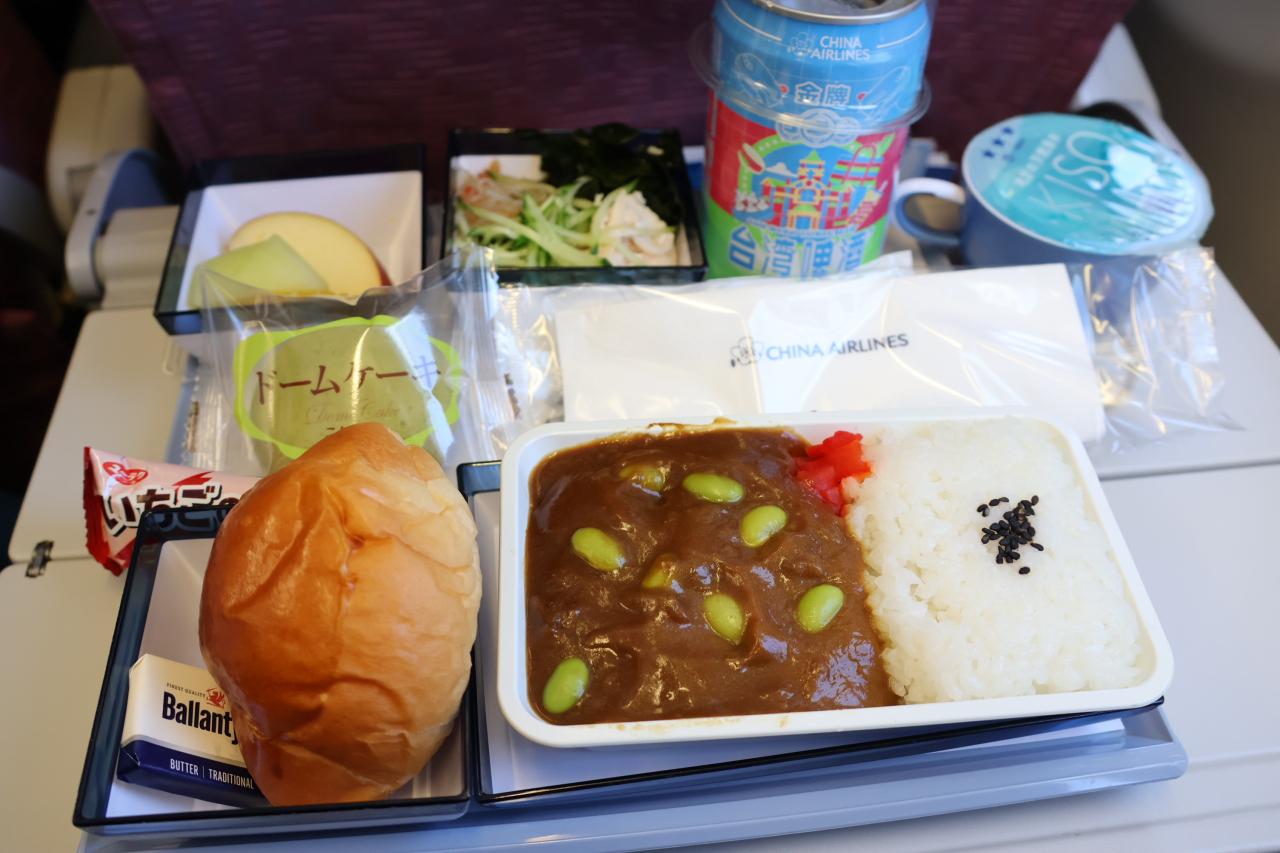 そして、まさかの家庭で出てくるような日本のカレーライス。ボリューム大!やっぱ機内食ならCIでしょう~