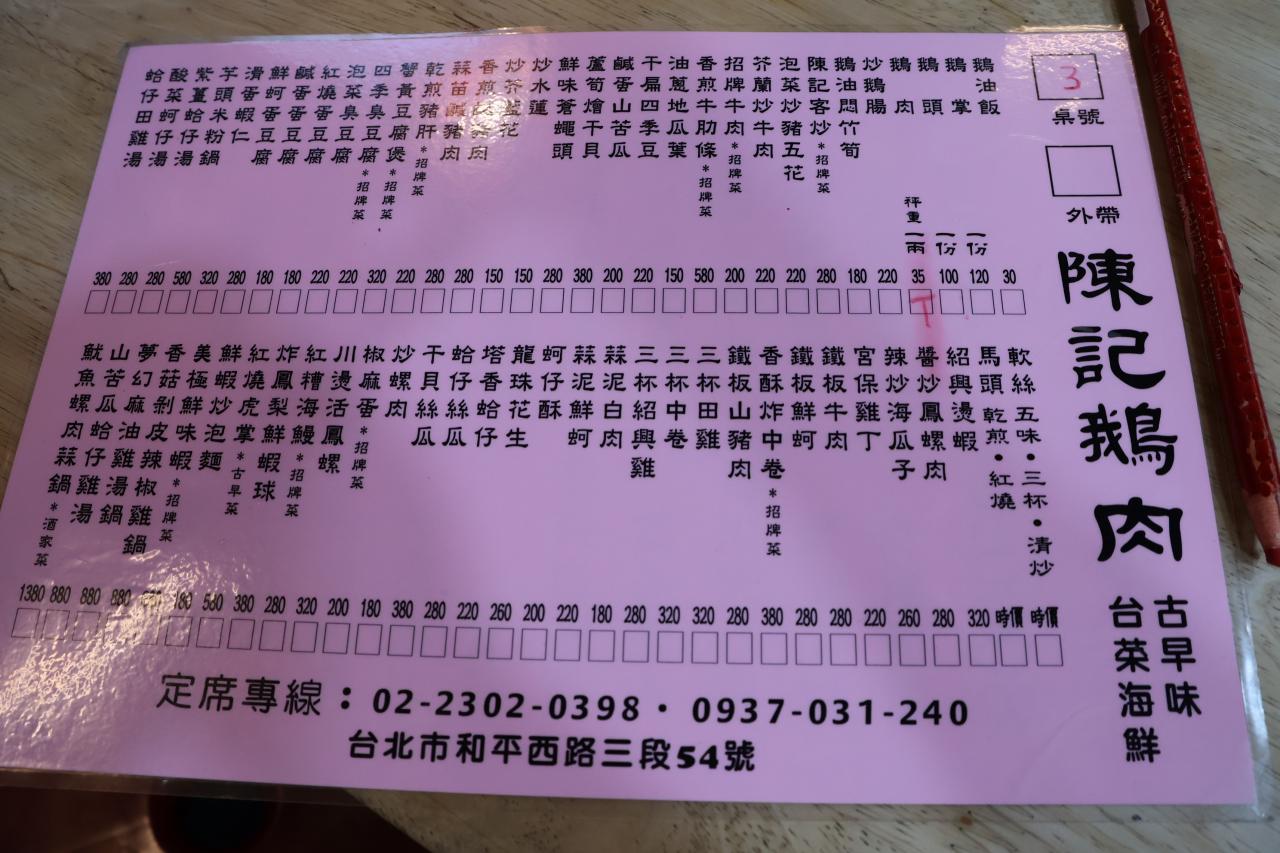 南機場夜市から龍山寺に帰る途中、大きな道路3号線沿いの店「陳記鵝肉古早味海鮮台菜」へ