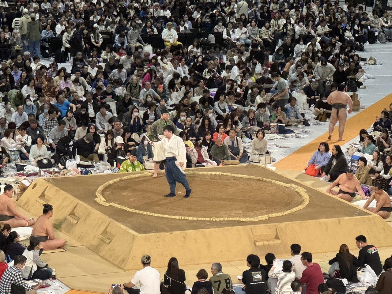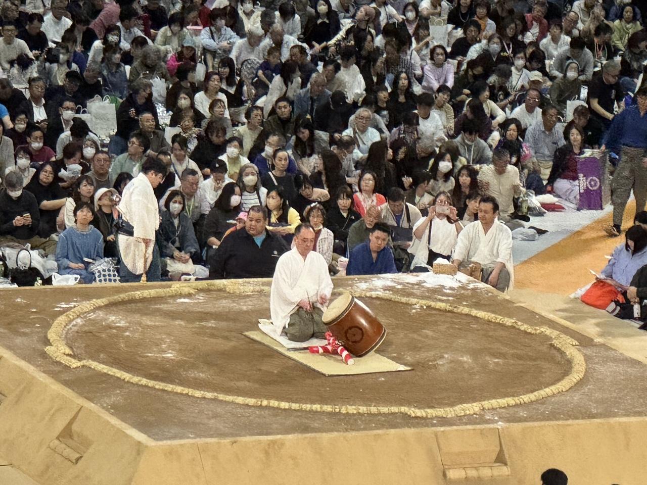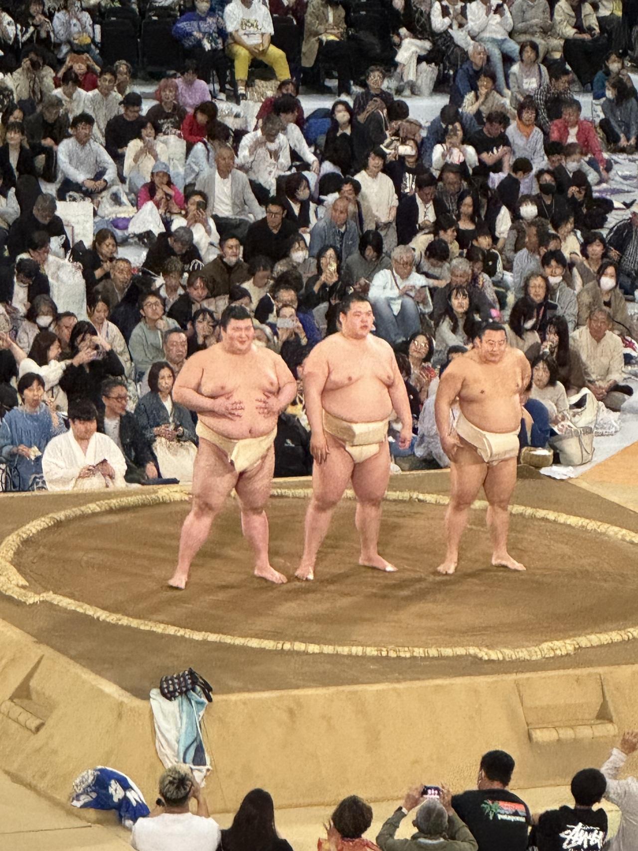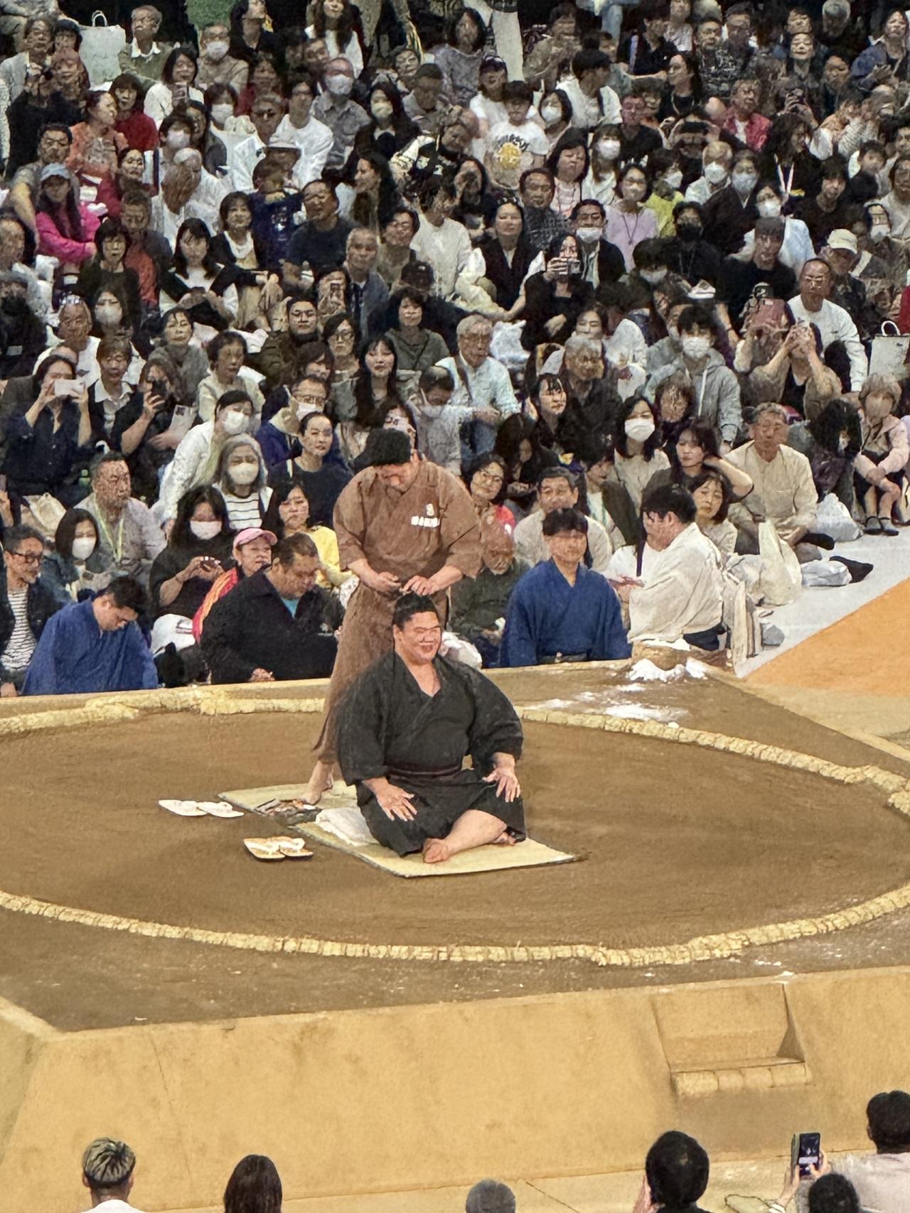 一緒の仲間は何度か国技館の椅子席で本場所を観ていますが、そこよりかなり近いようでここで十分です。 -