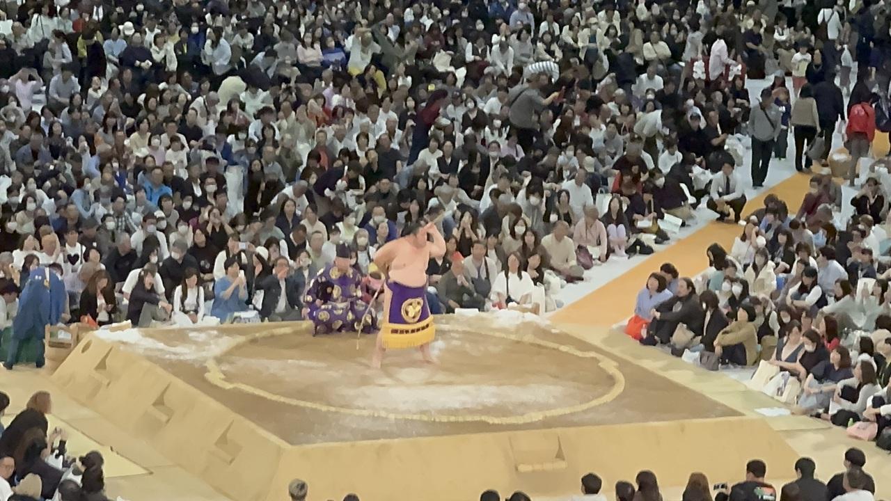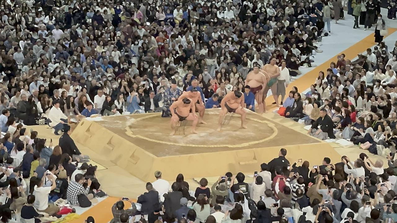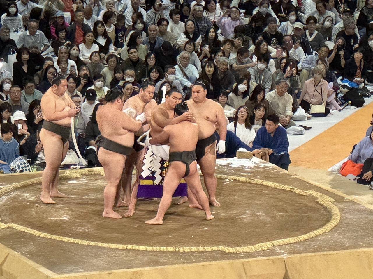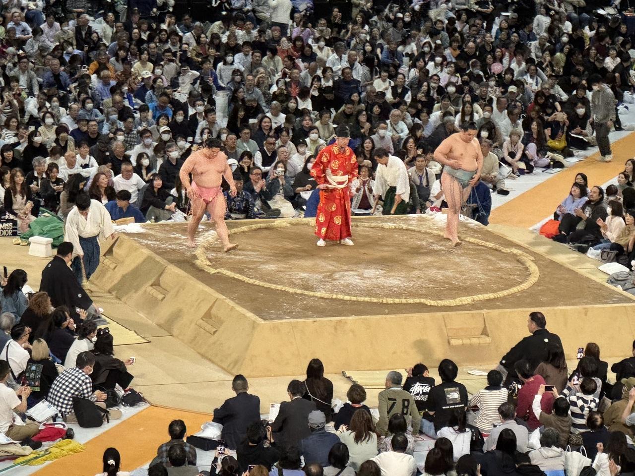 一緒の仲間は何度か国技館の椅子席で本場所を観ていますが、そこよりかなり近いようでここで十分です。 -