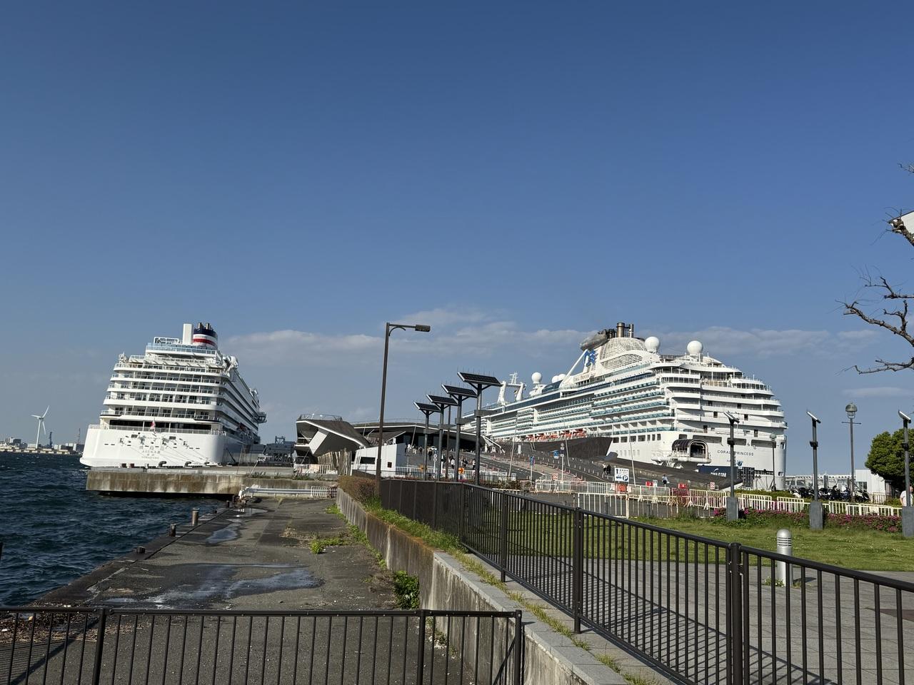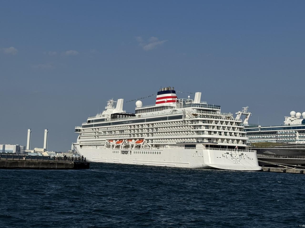 この日、新港埠頭には飛鳥Ⅱも停泊していて、右奥の方に微かに見えます。