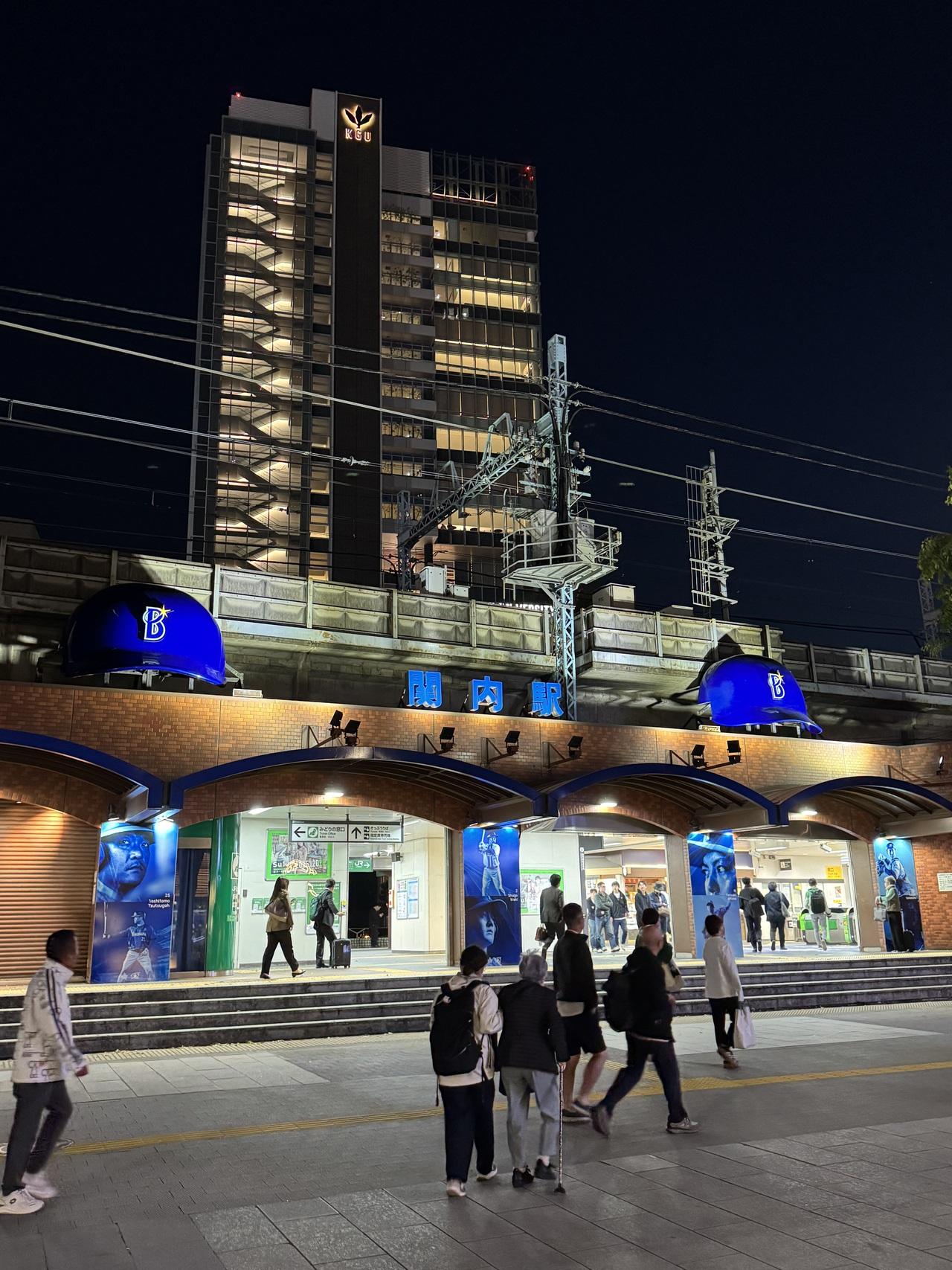 関内駅は横浜球場にも近く、駅にはベイスターズのヘルメットが。