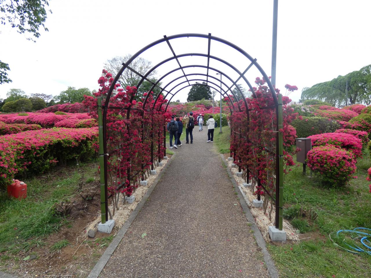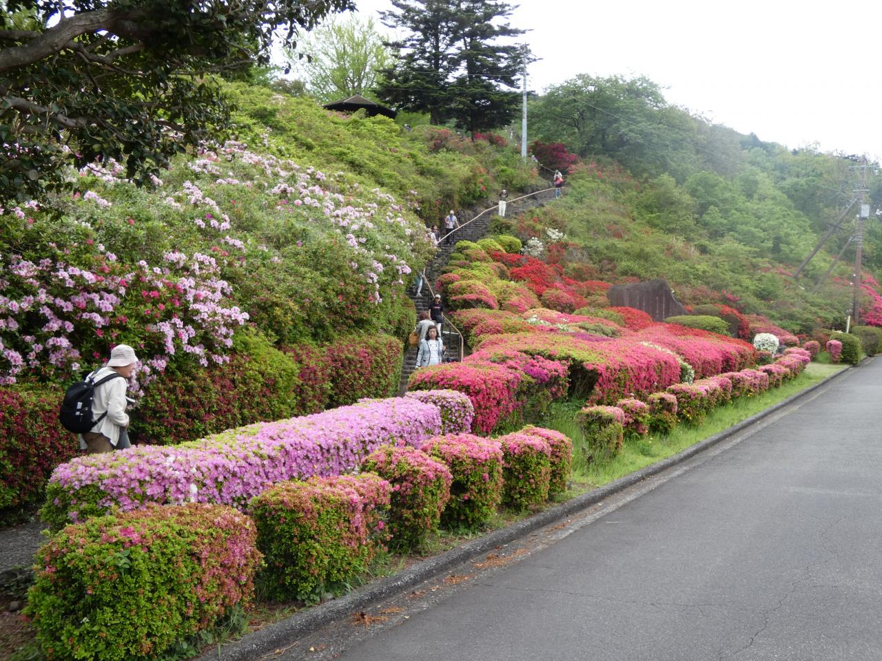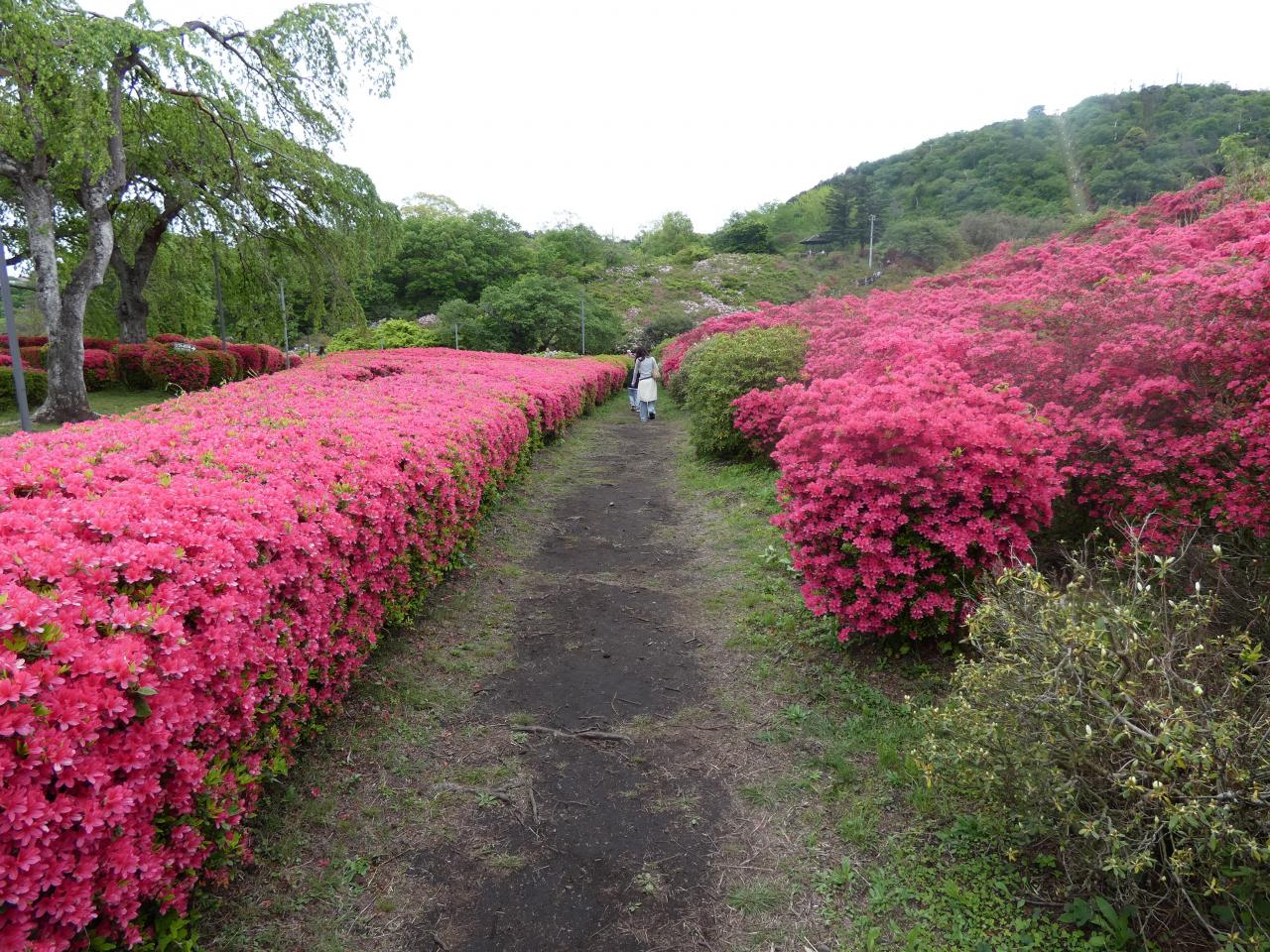 電車・バスを乗り継ぎ小室山ツツジに着く -