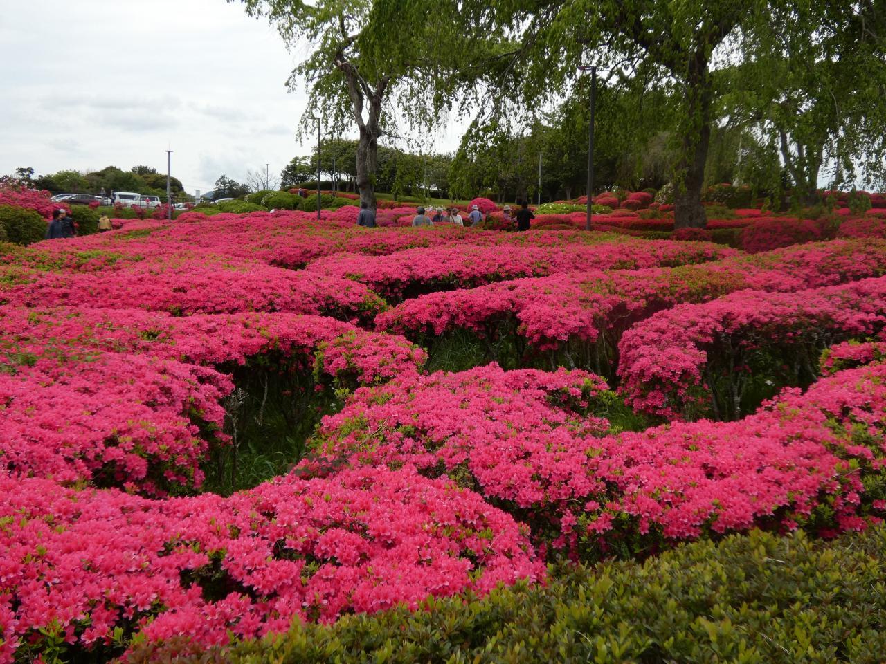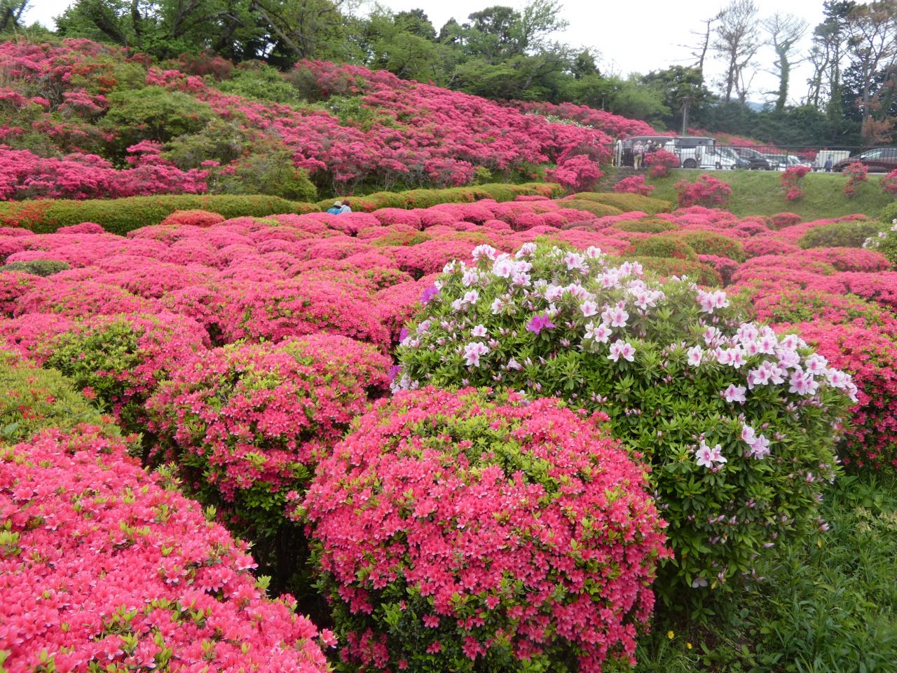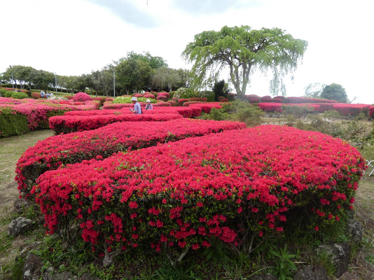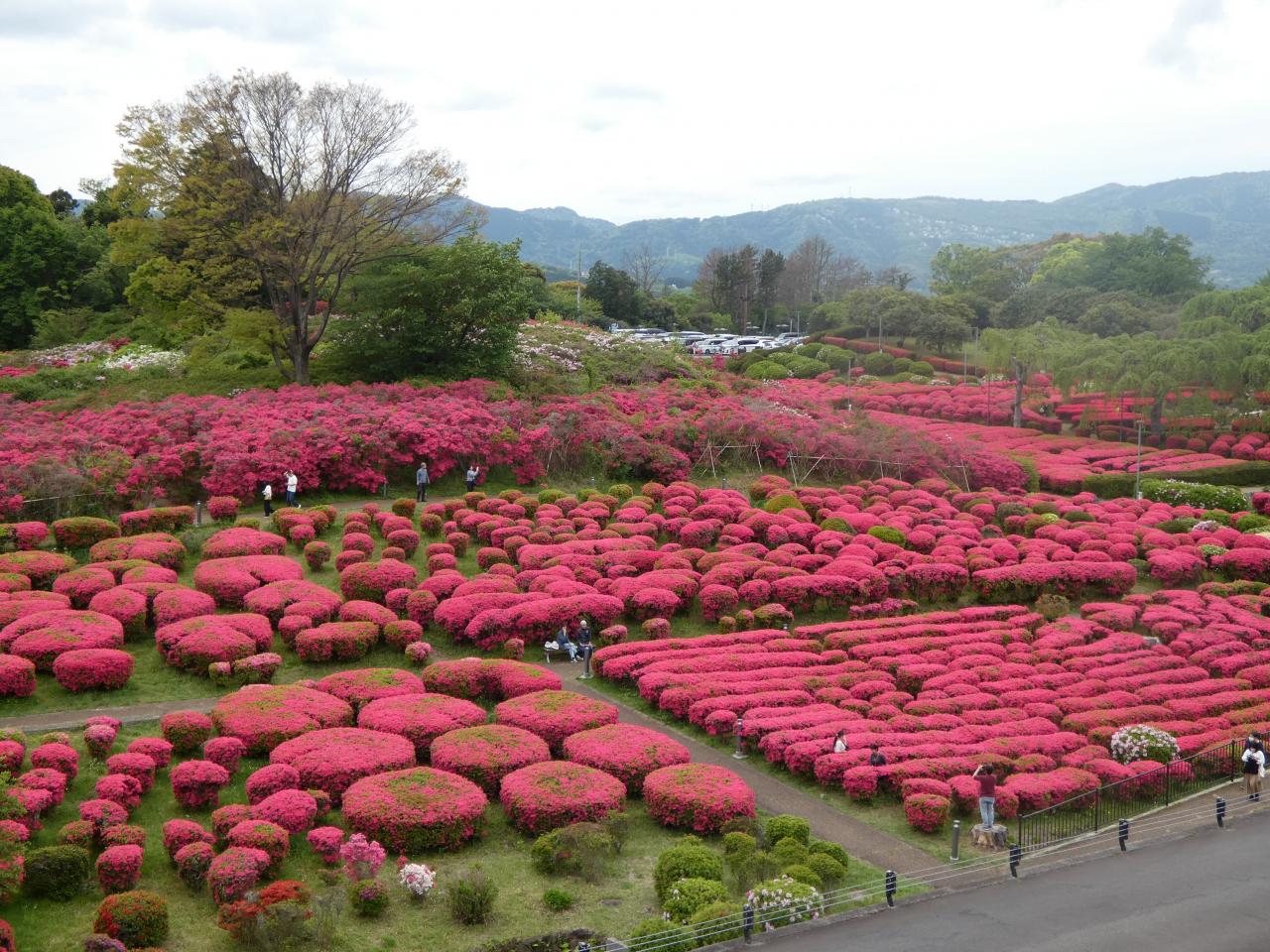 netでは見頃との情報、しばらくすると雨模様、 それを去ると見頃でなくなるので曇り空だが見に行った。 ※初めて小室山のリフトに乗る⇒曇りのせいか5分で下山
