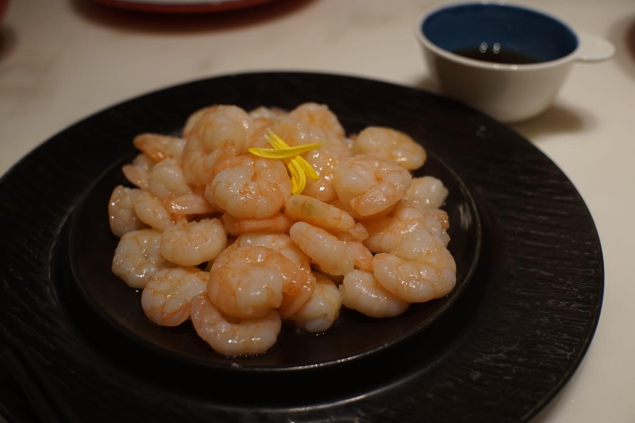 海老に黒酢を付けて食べる料理