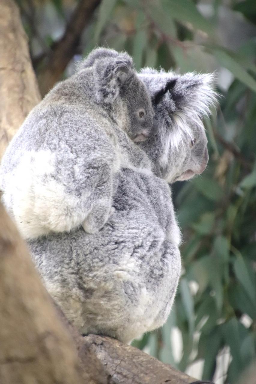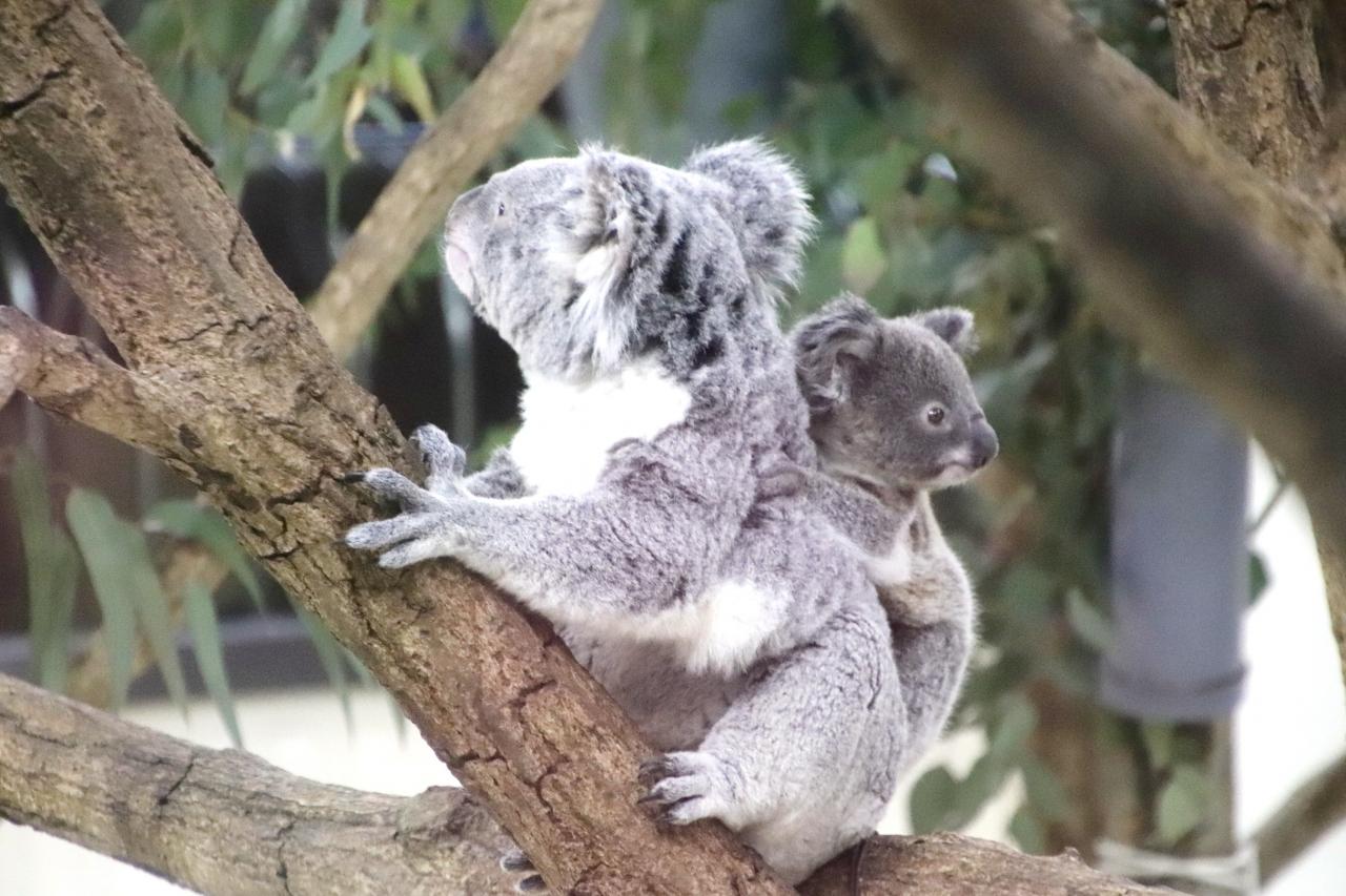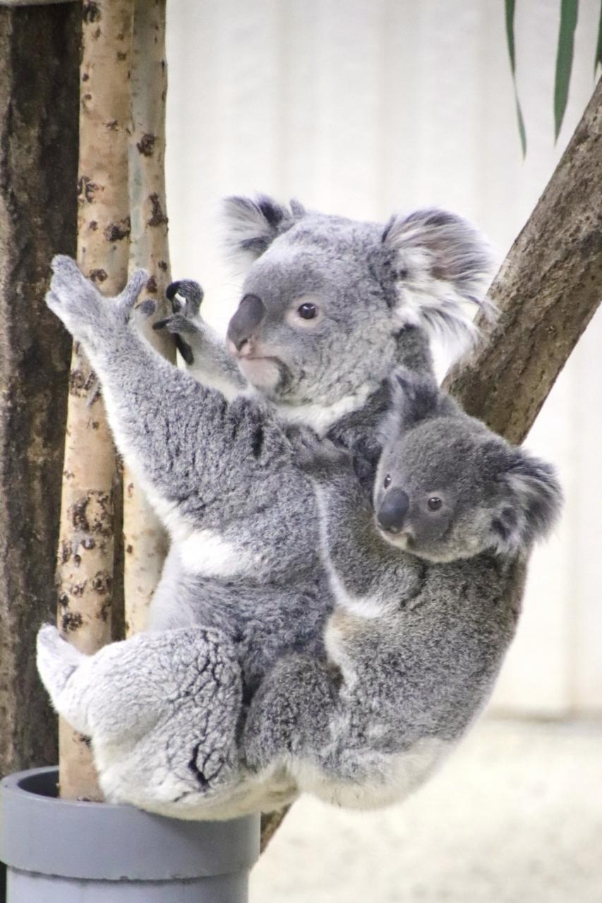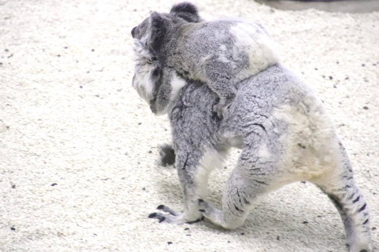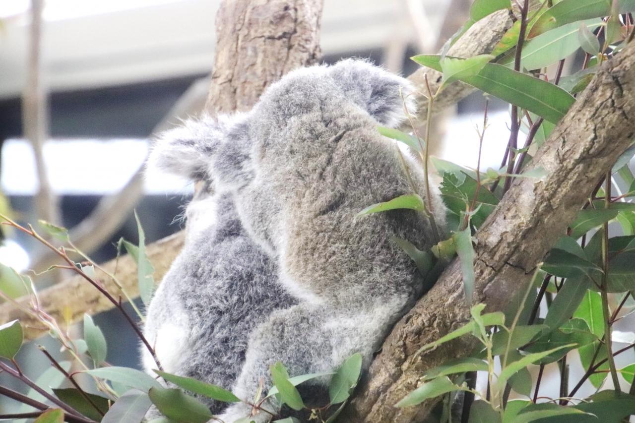 でも、本日のミッションに掲げていた項目のうち、ナマケモノフェスティバルのイベント以外では、名前が決まったコアラのダブル赤ちゃん───ヒヨリちゃんとポルちゃんには会えたし、どちらもおんぶ姿が見られました!