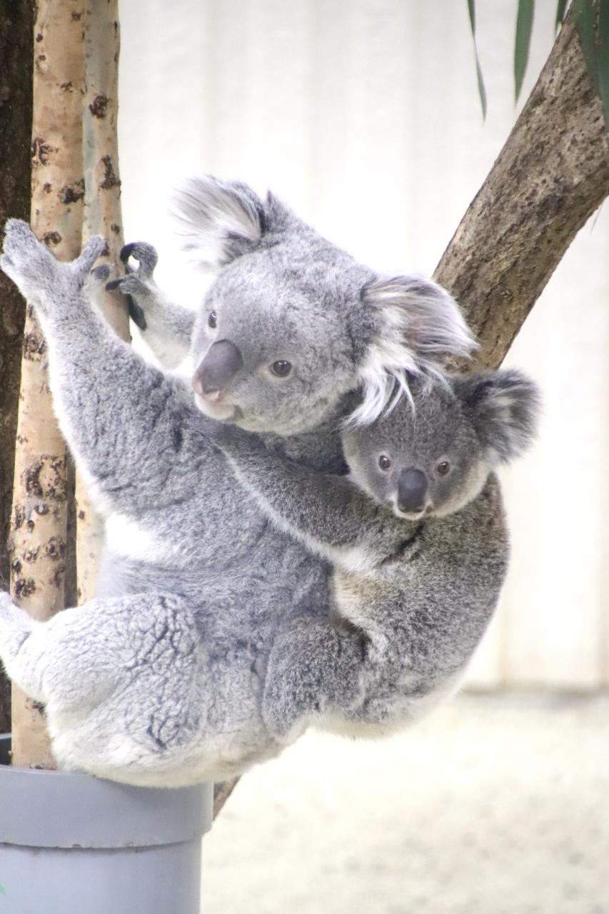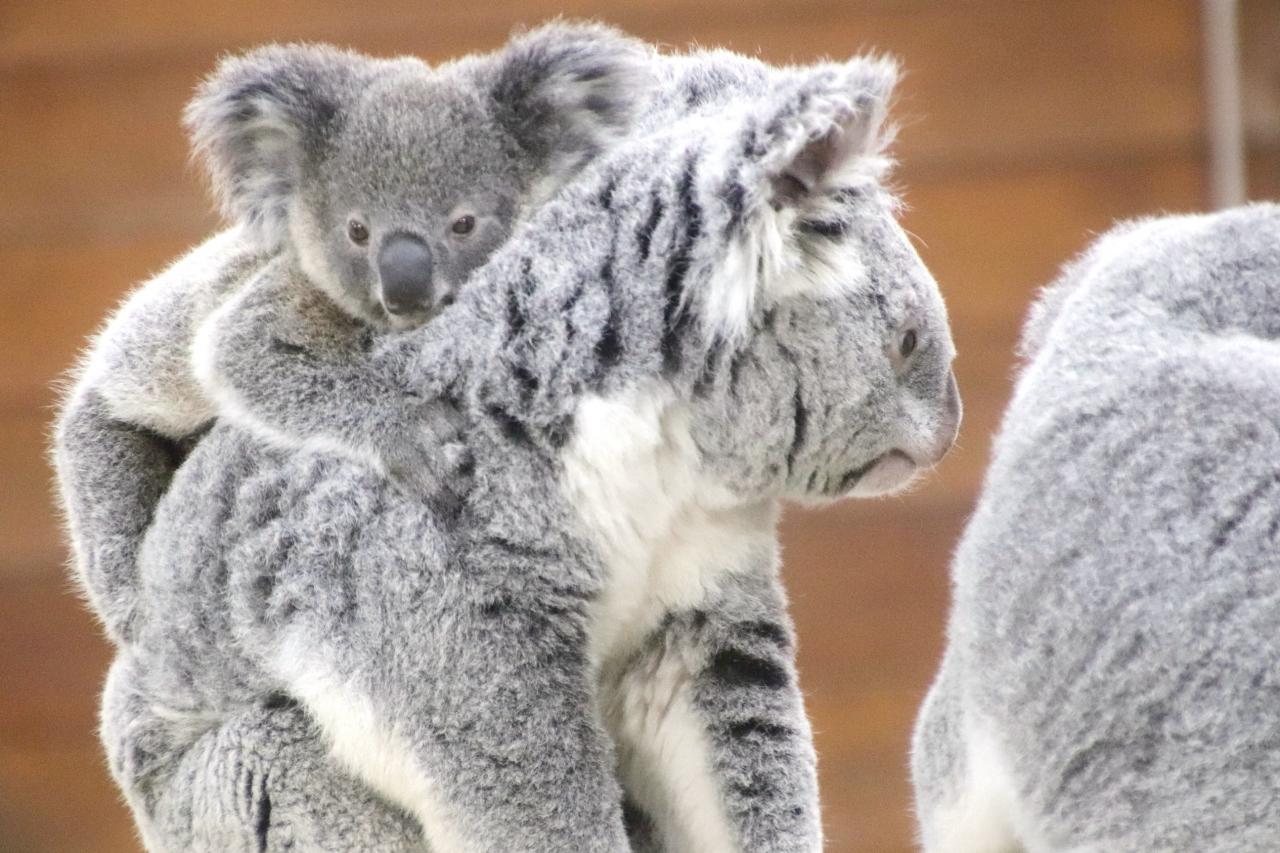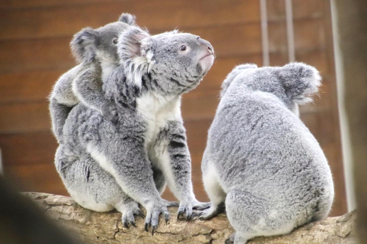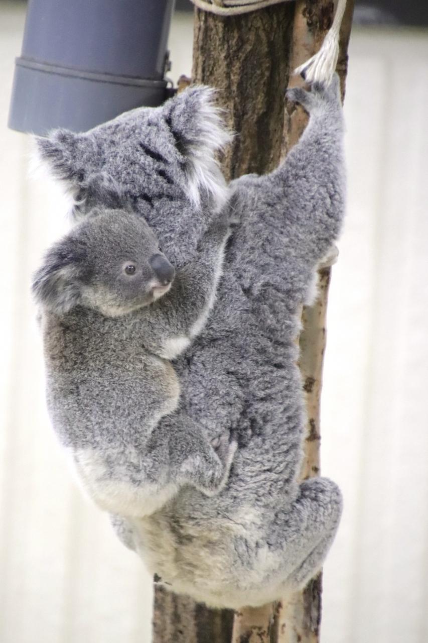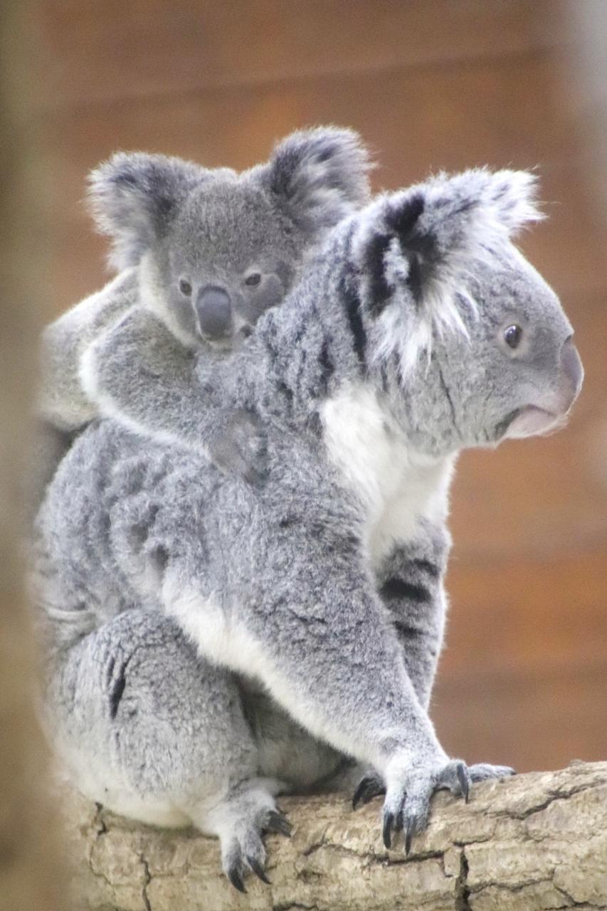 でも、本日のミッションに掲げていた項目のうち、ナマケモノフェスティバルのイベント以外では、名前が決まったコアラのダブル赤ちゃん───ヒヨリちゃんとポルちゃんには会えたし、どちらもおんぶ姿が見られました!