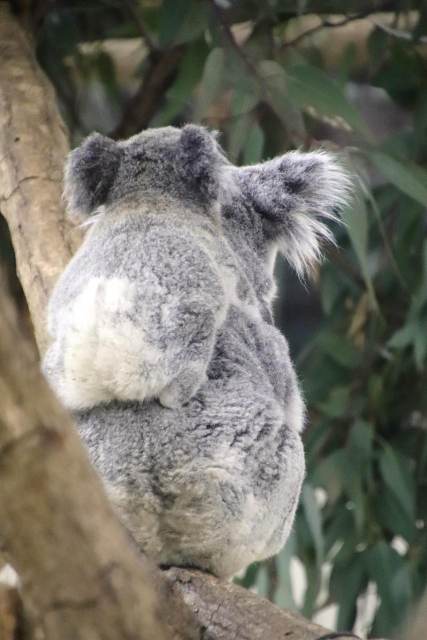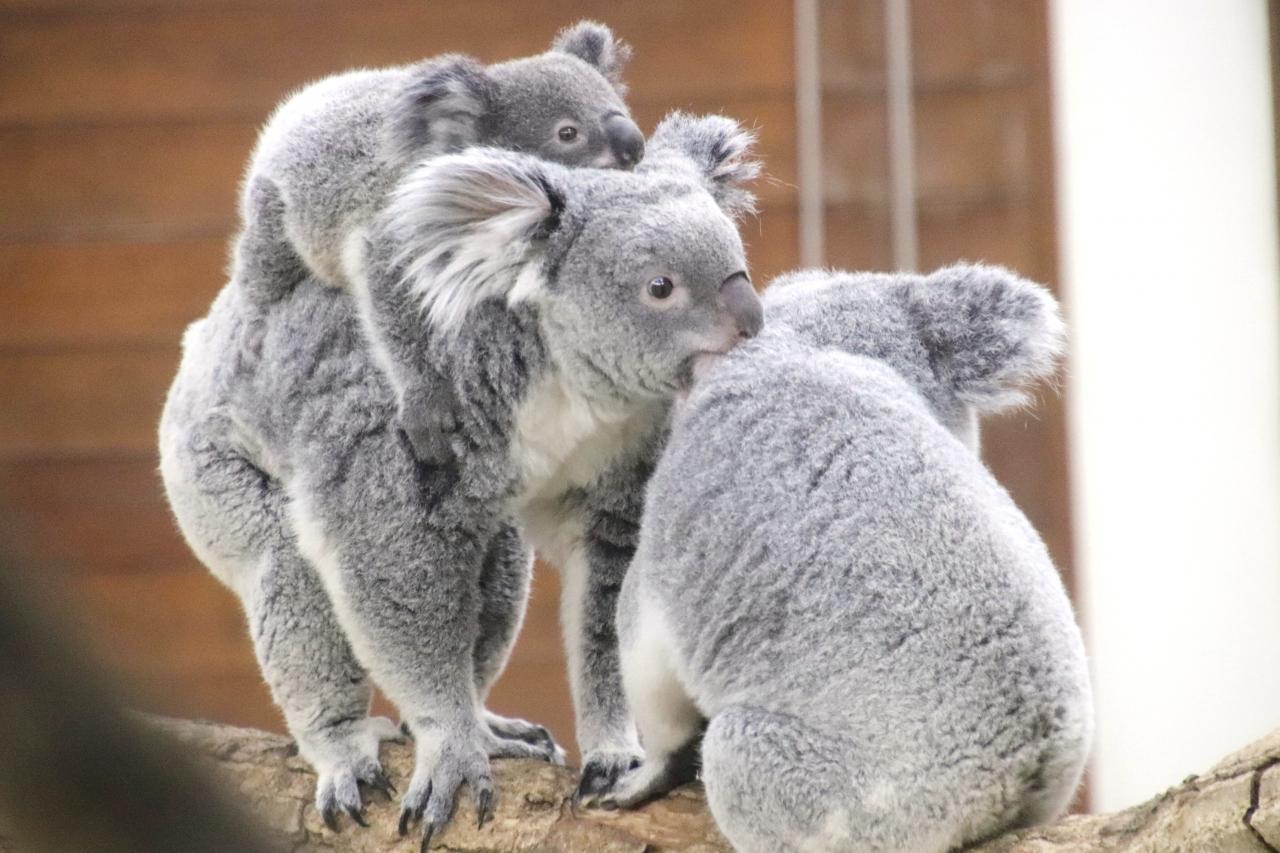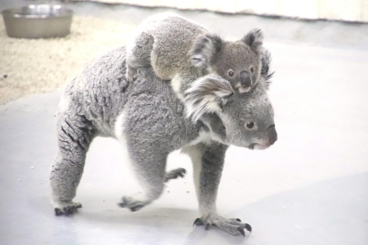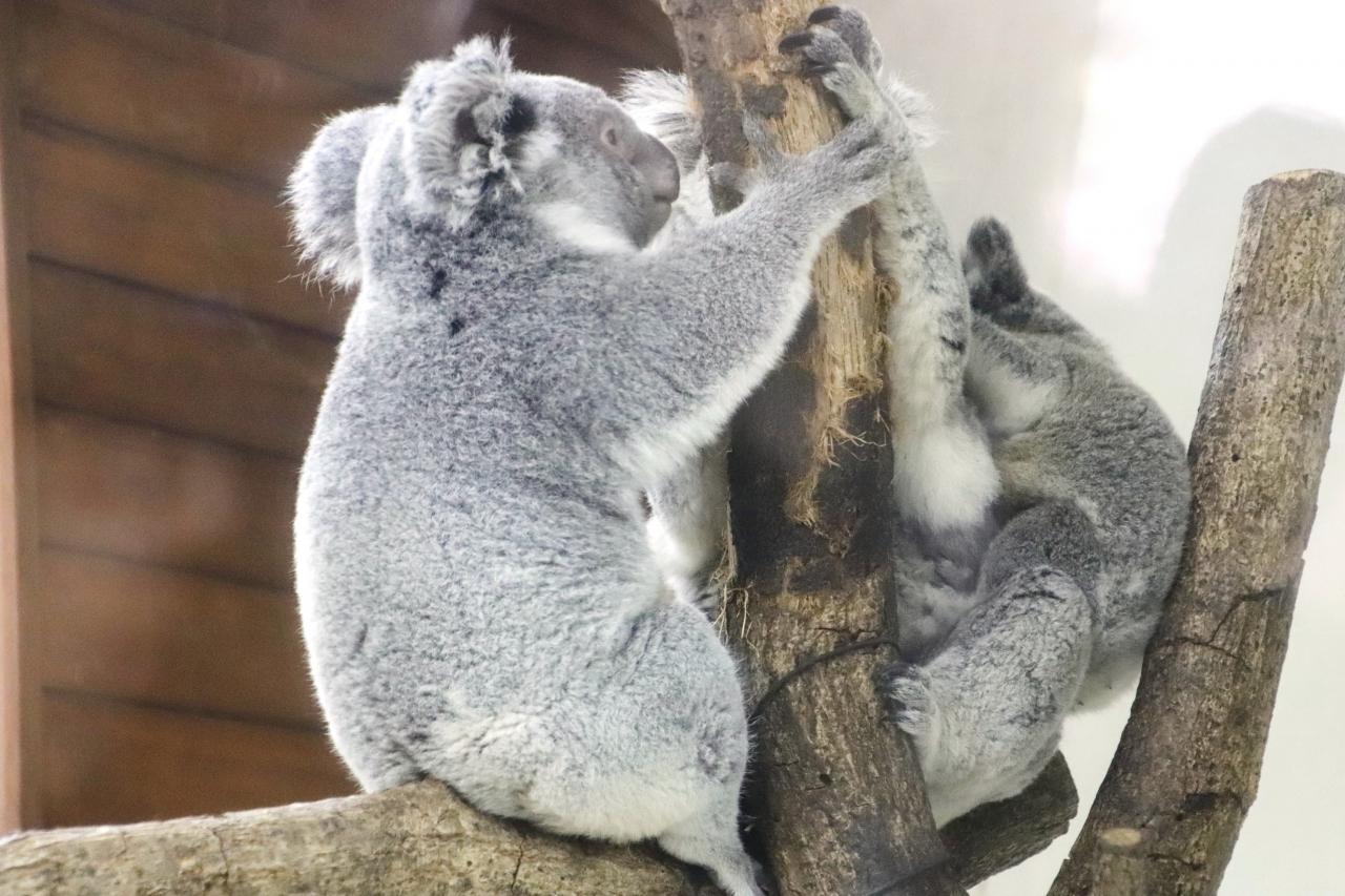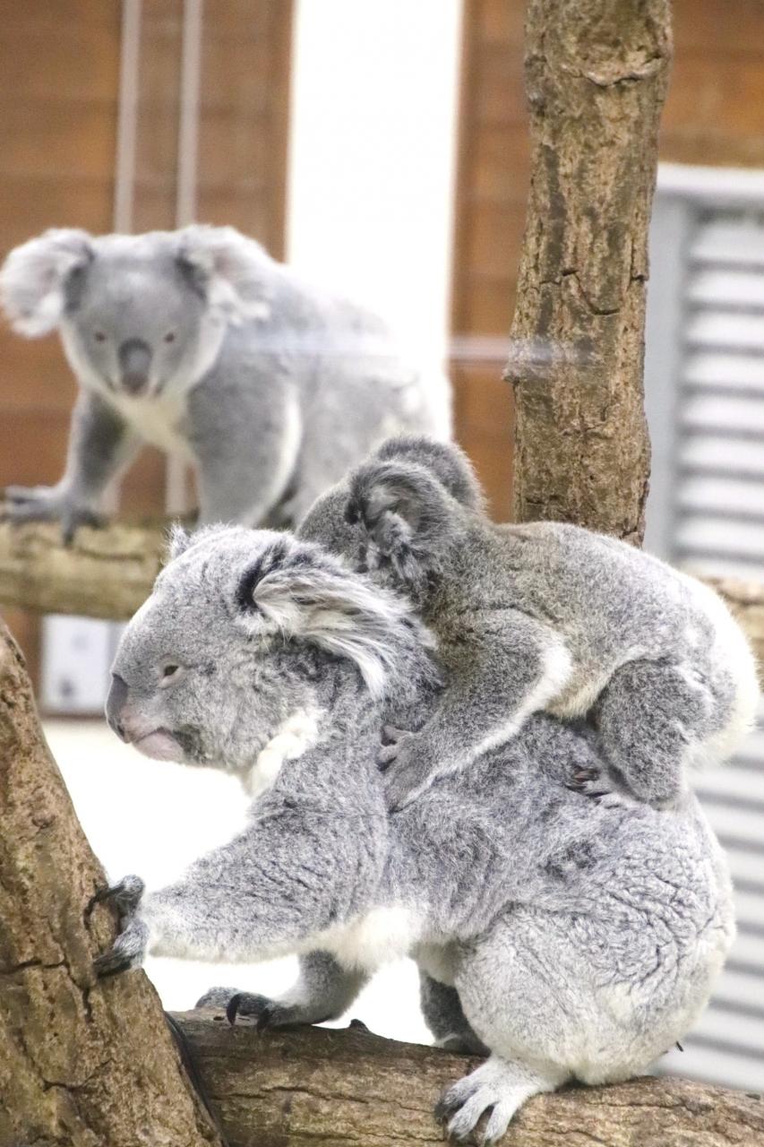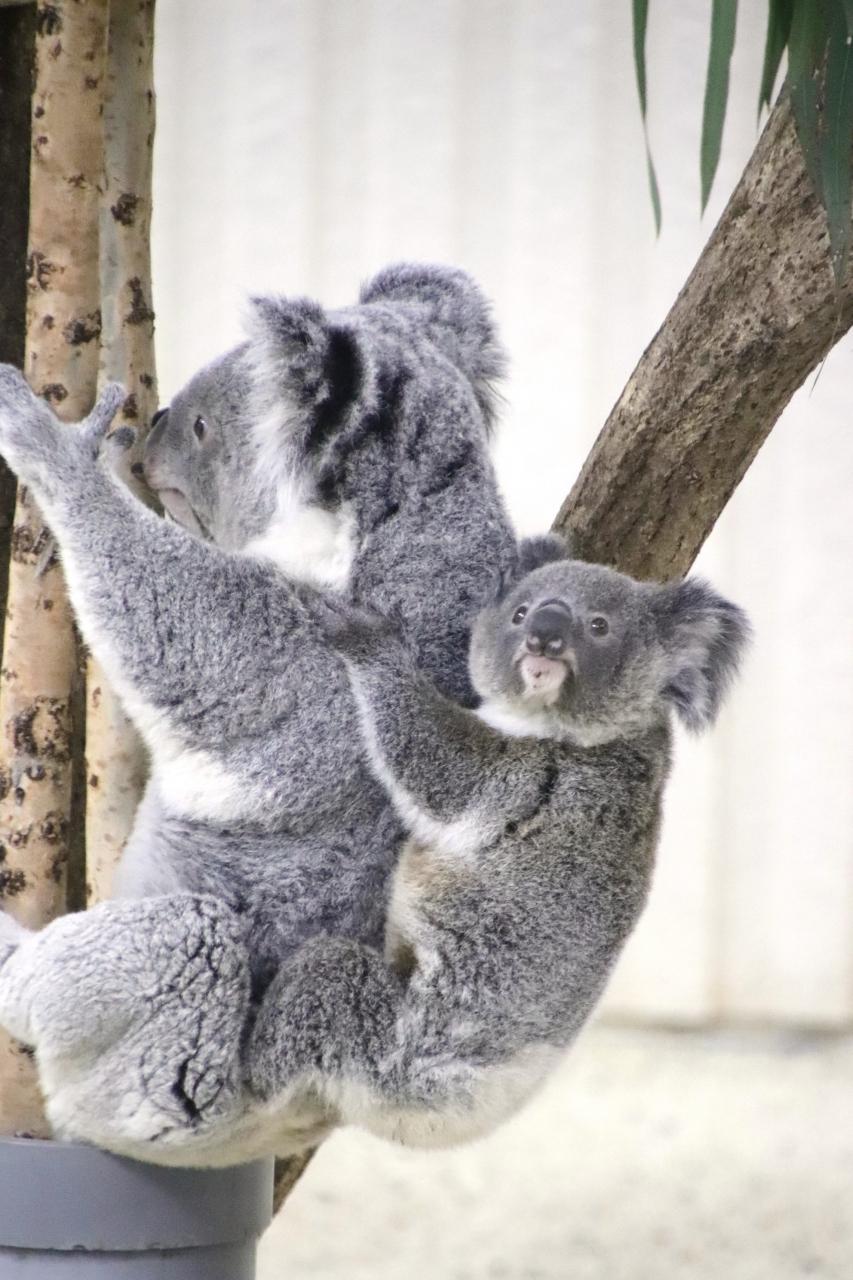 でも、本日のミッションに掲げていた項目のうち、ナマケモノフェスティバルのイベント以外では、名前が決まったコアラのダブル赤ちゃん───ヒヨリちゃんとポルちゃんには会えたし、どちらもおんぶ姿が見られました!