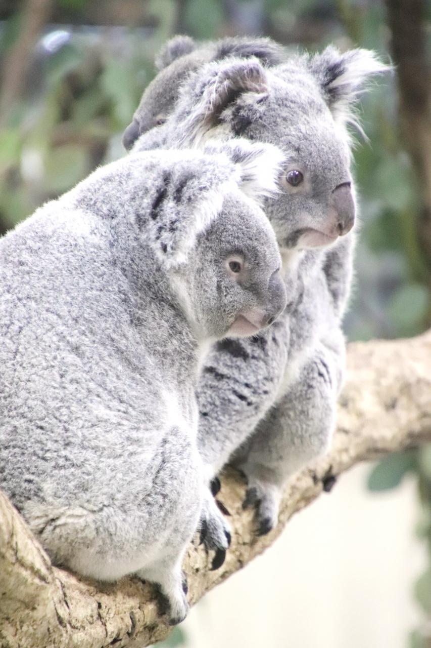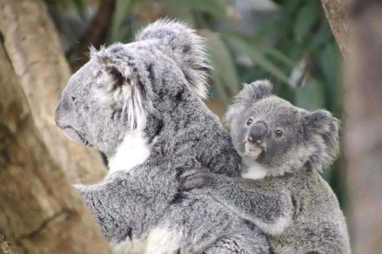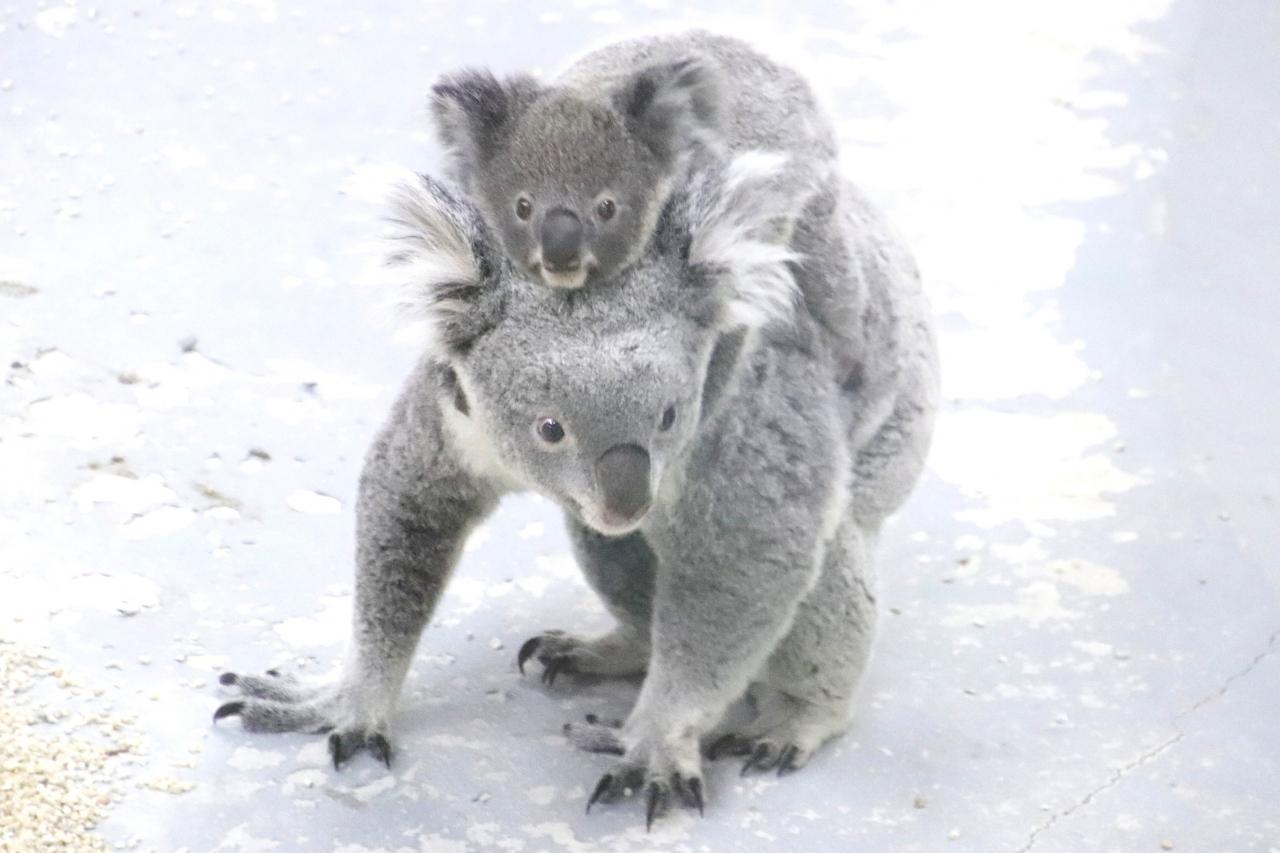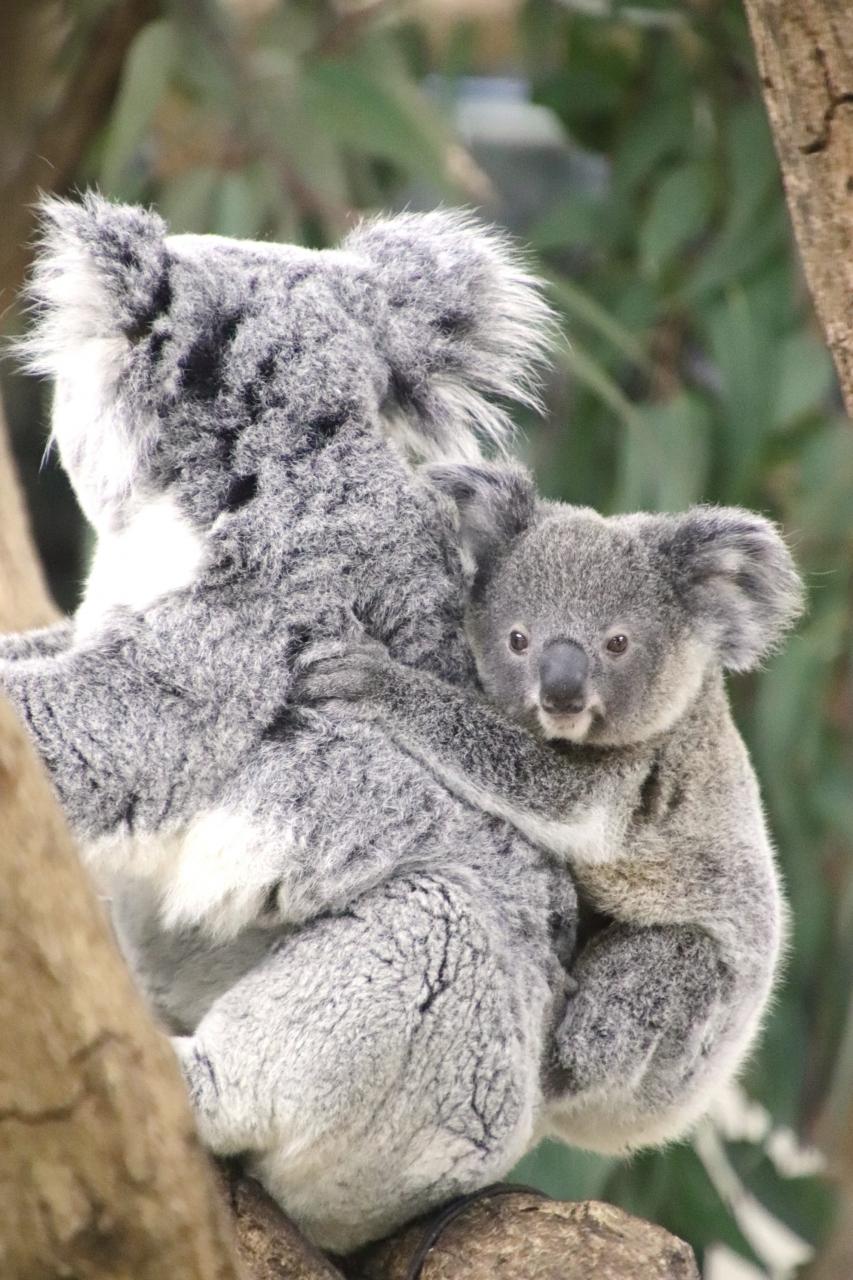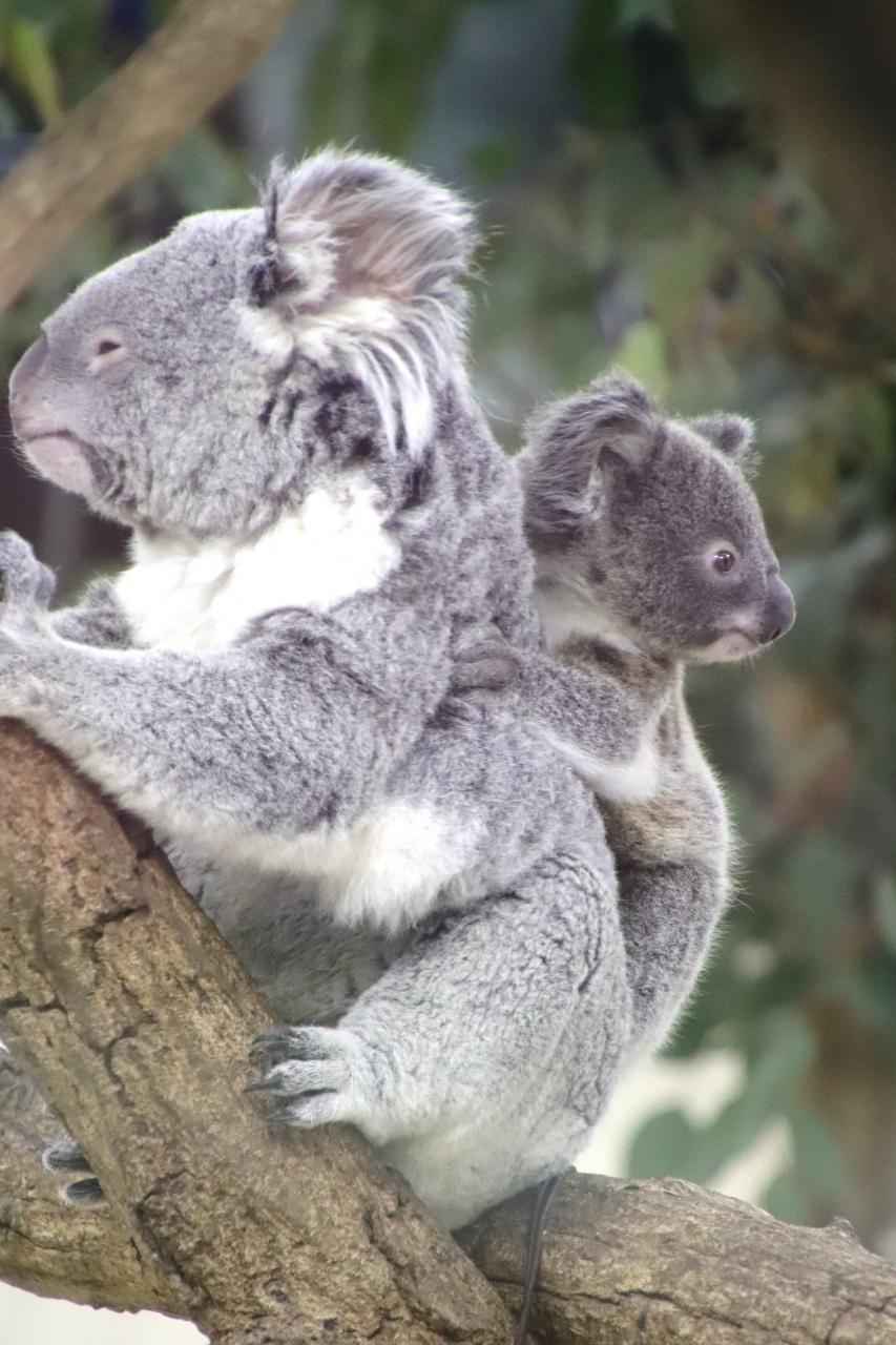 でも、本日のミッションに掲げていた項目のうち、ナマケモノフェスティバルのイベント以外では、名前が決まったコアラのダブル赤ちゃん───ヒヨリちゃんとポルちゃんには会えたし、どちらもおんぶ姿が見られました!
