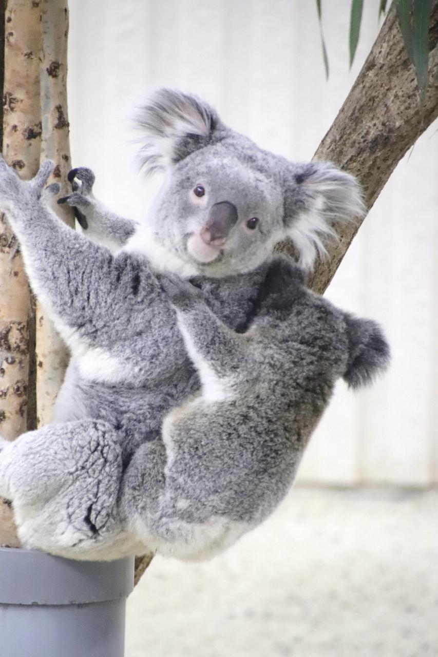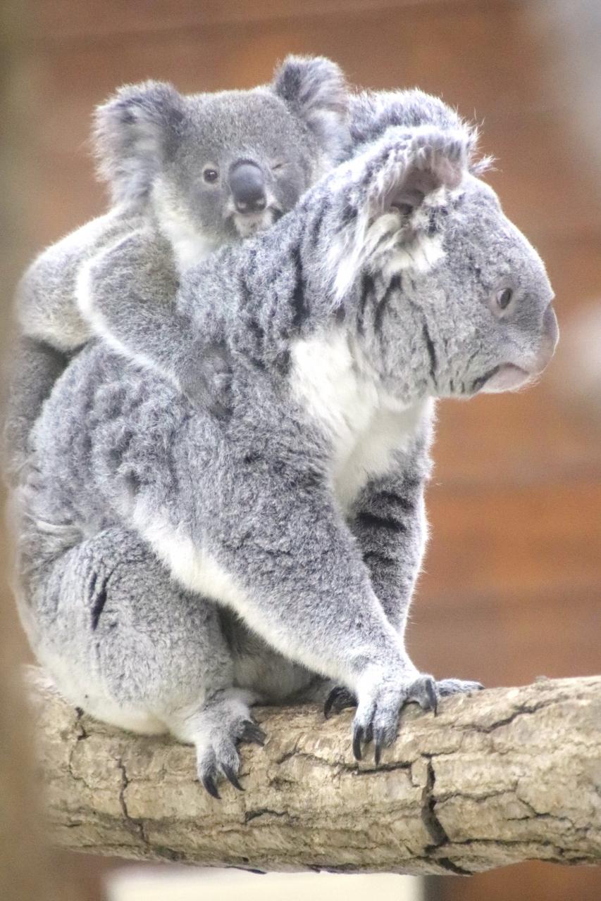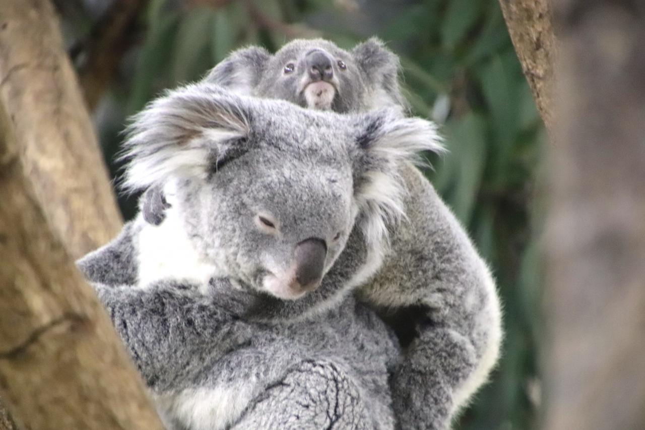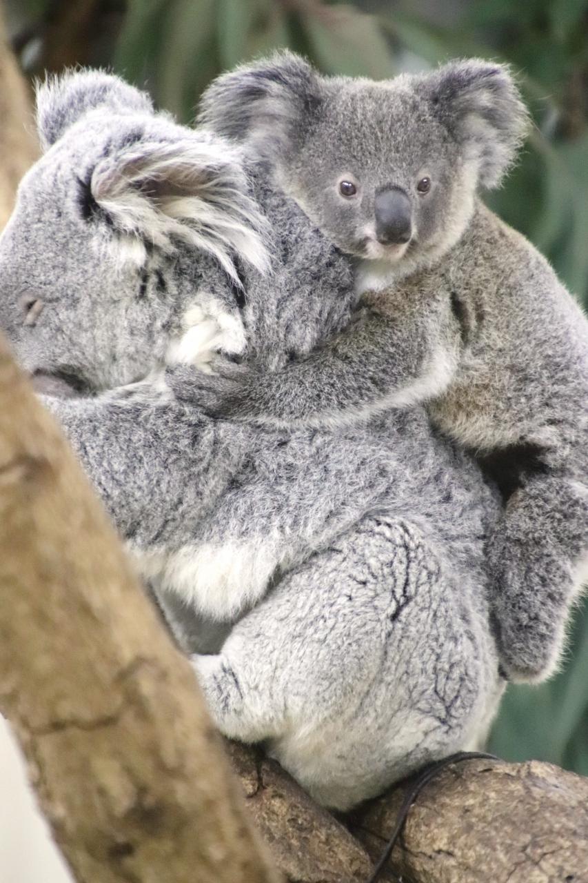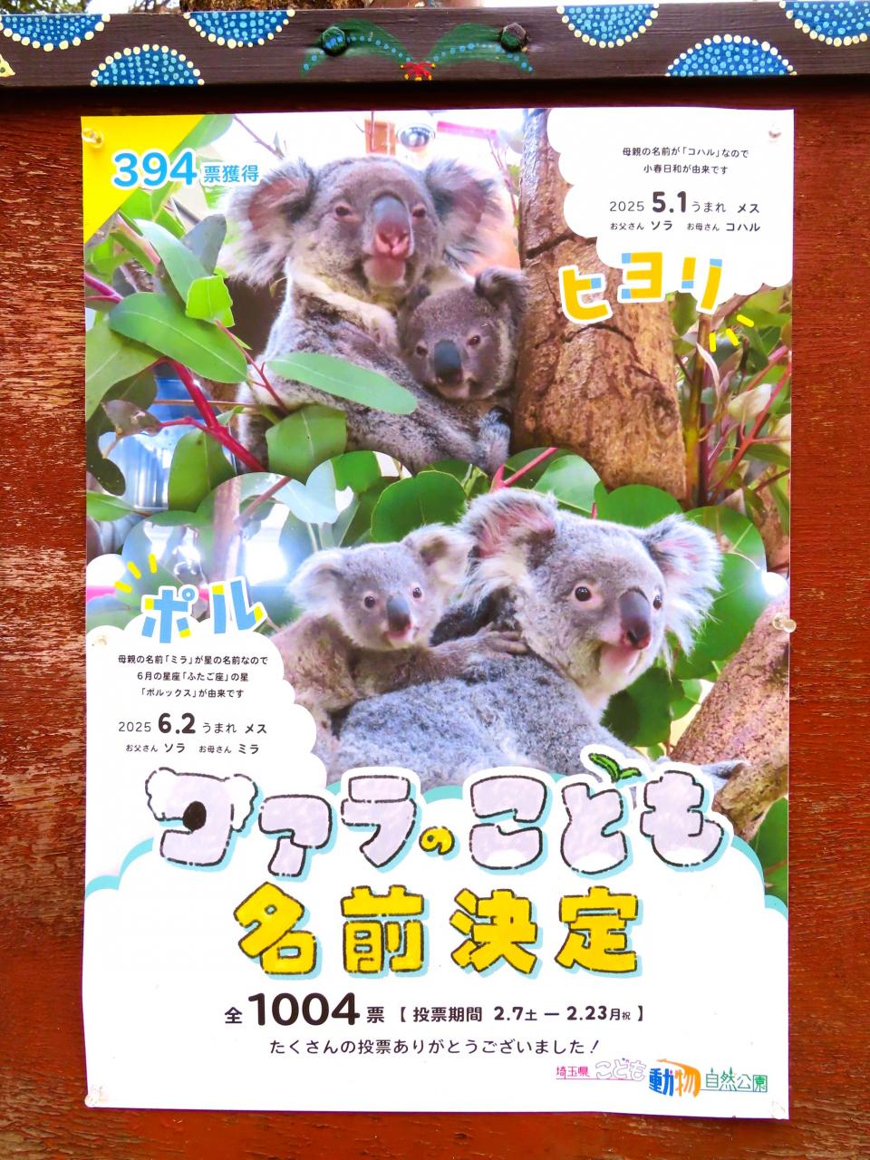 でも、本日のミッションに掲げていた項目のうち、ナマケモノフェスティバルのイベント以外では、名前が決まったコアラのダブル赤ちゃん───ヒヨリちゃんとポルちゃんには会えたし、どちらもおんぶ姿が見られました!