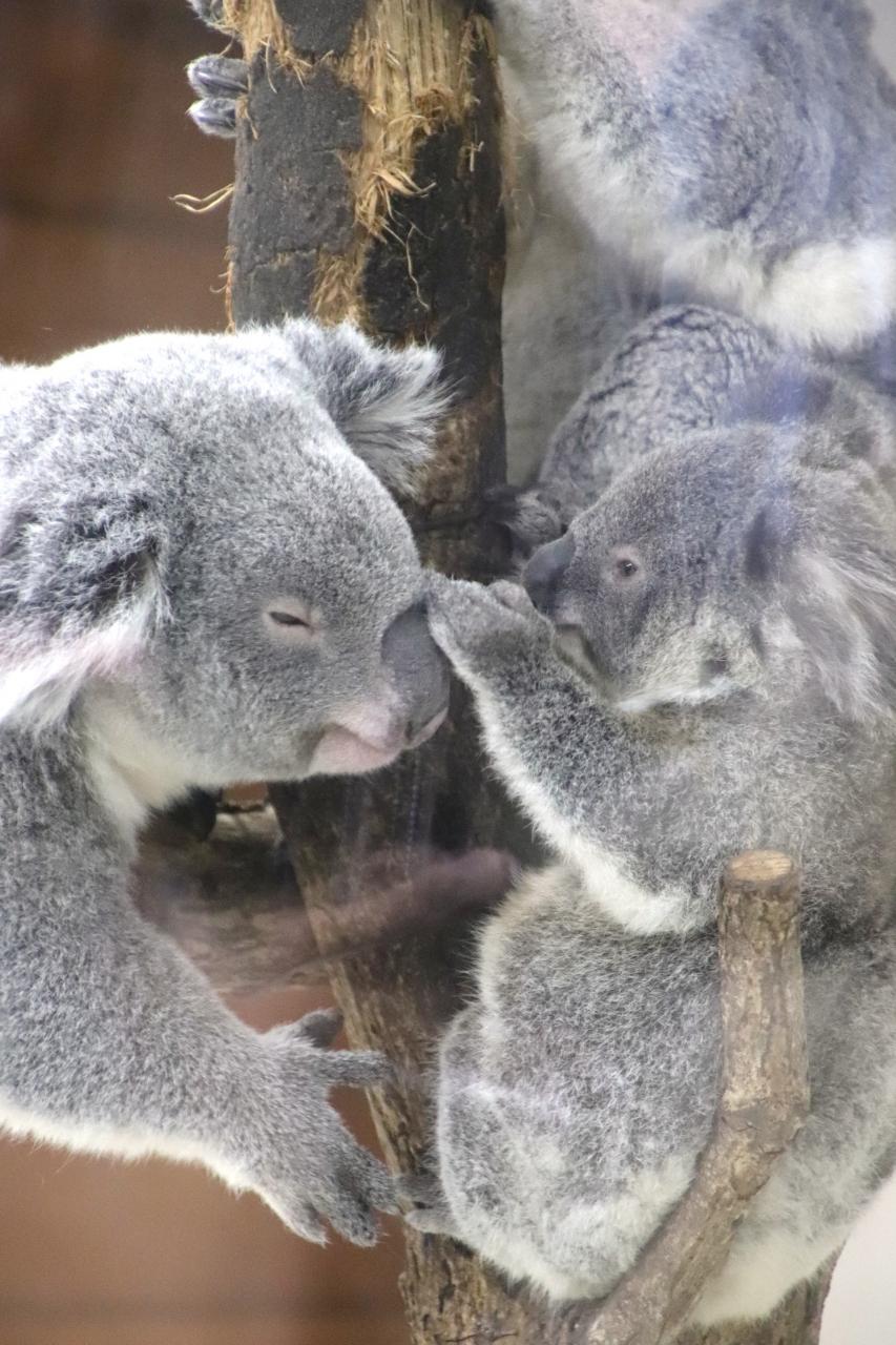 コアラの赤ちゃんたちについていえば、ヒヨリちゃんが、こはるママではなく、大叔母さんにあたるふくちゃんにおんぶをしてもらっていたところが、午前中のハイライトでした!