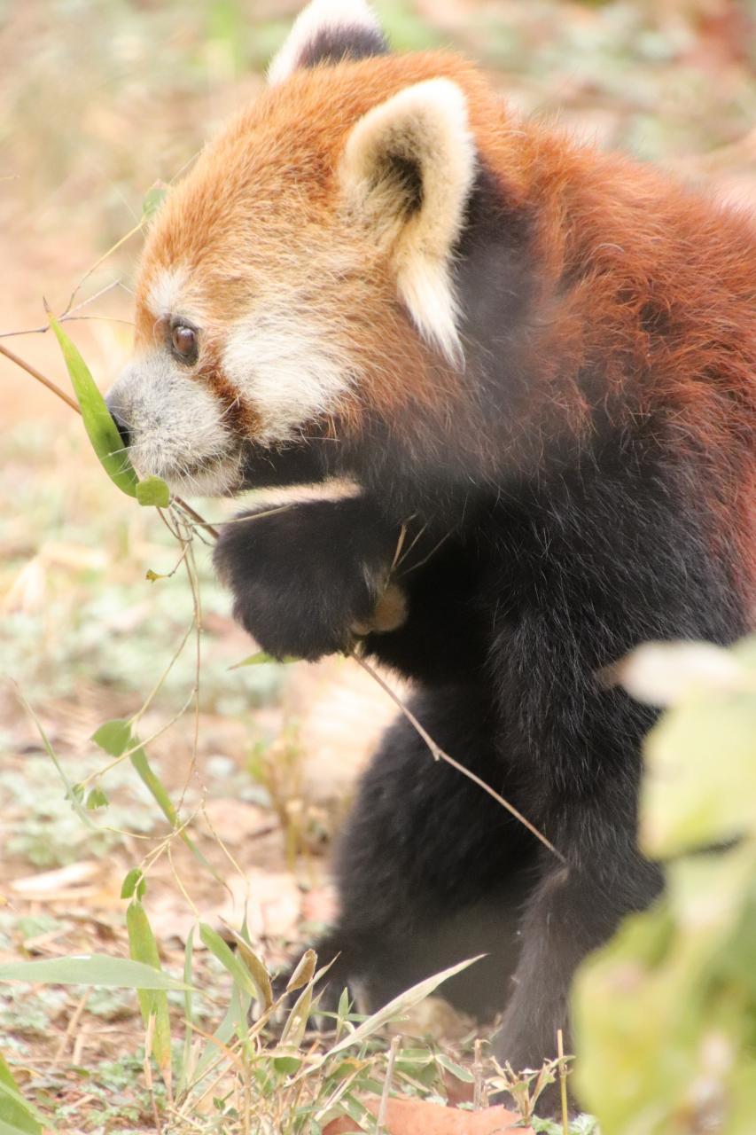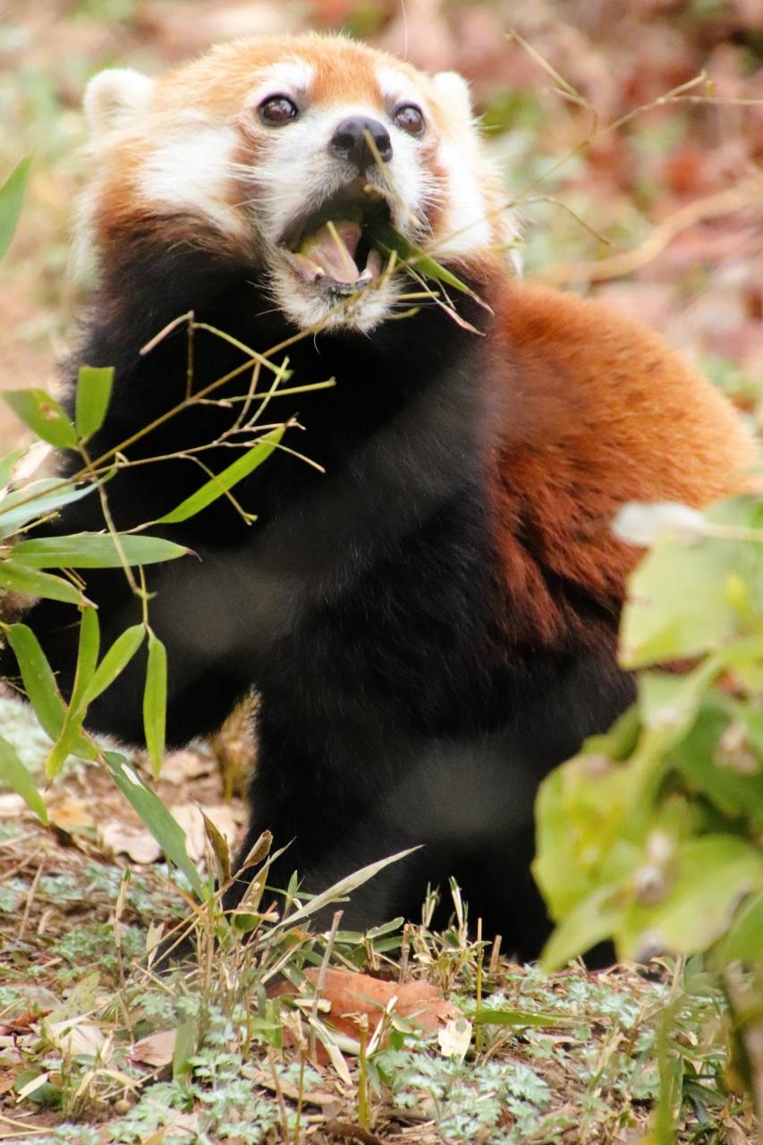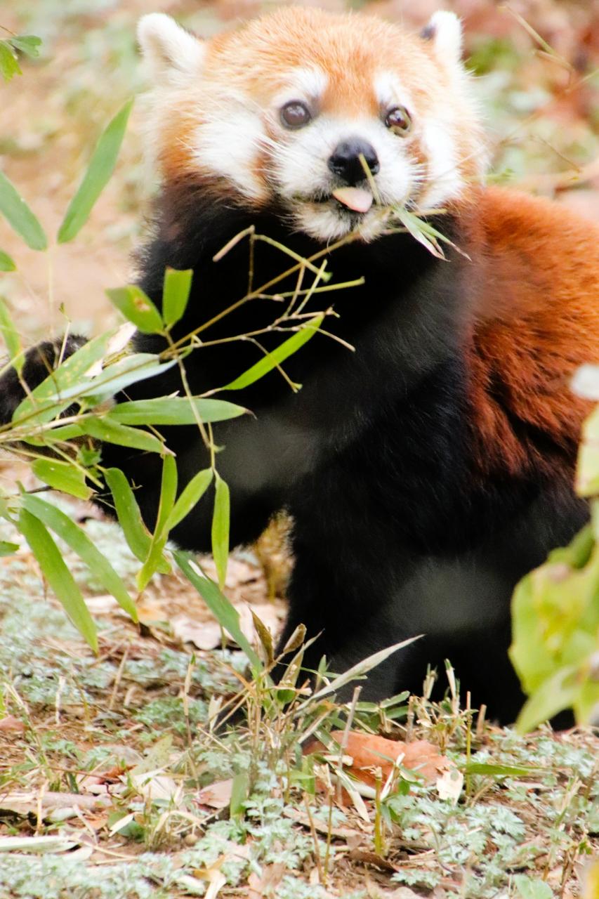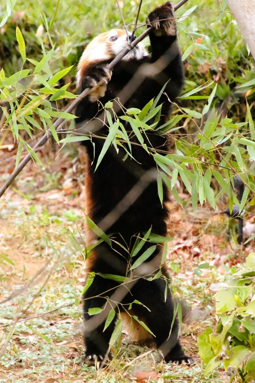 なので今回は、レッサーパンダの写真の収穫はあんまりないかも、と思いながら、近くで持参のパンを食べながら休憩していたら……ココロくんが降りてきて、笹を食べたり、遅ればせながらリンゴを見つけたり、めちゃくちゃフォトジェニックでした!