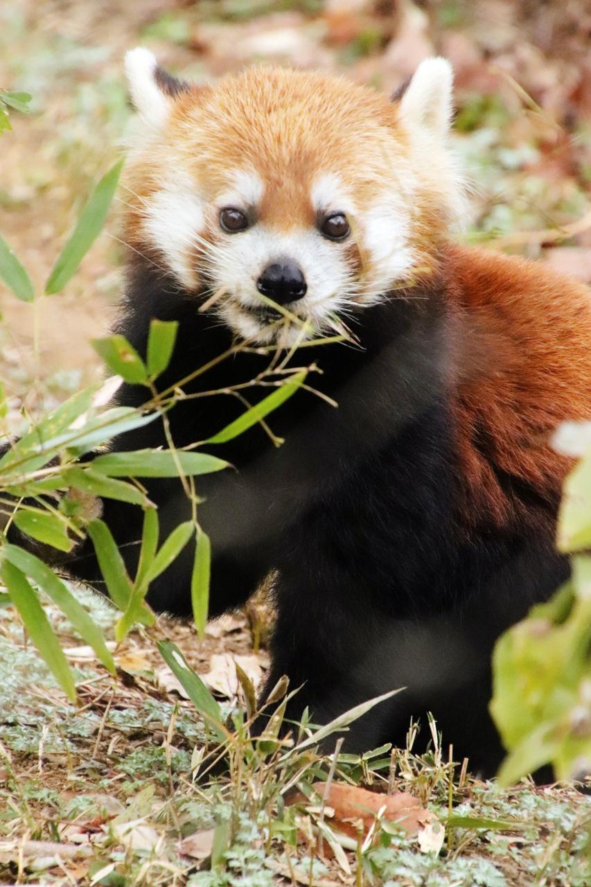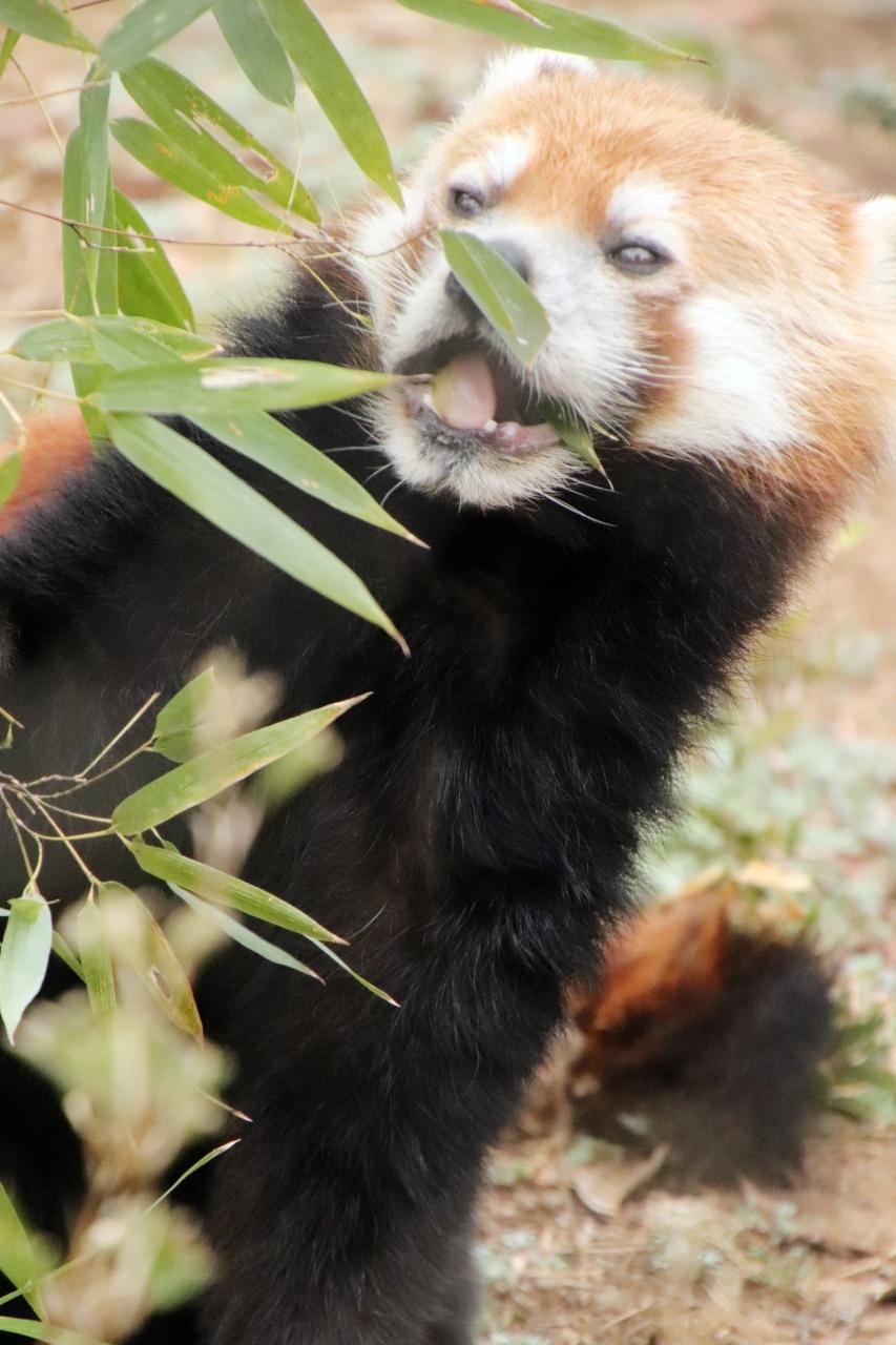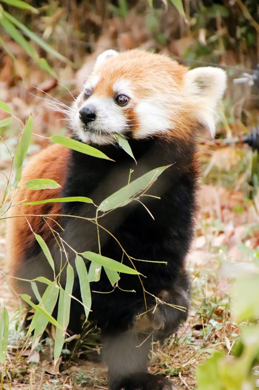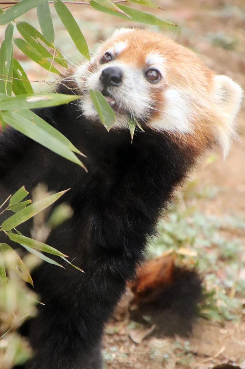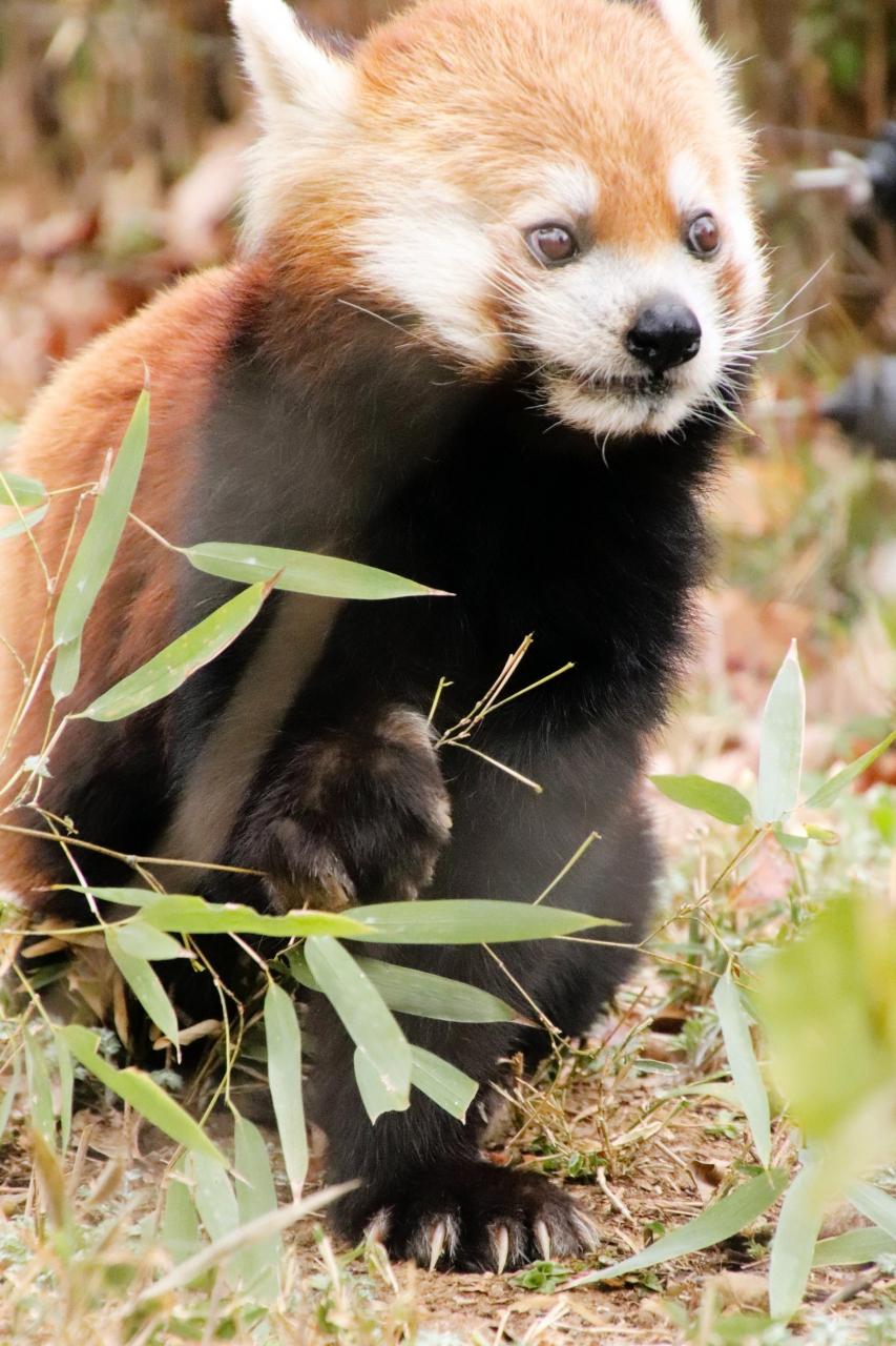 なので今回は、レッサーパンダの写真の収穫はあんまりないかも、と思いながら、近くで持参のパンを食べながら休憩していたら……ココロくんが降りてきて、笹を食べたり、遅ればせながらリンゴを見つけたり、めちゃくちゃフォトジェニックでした!