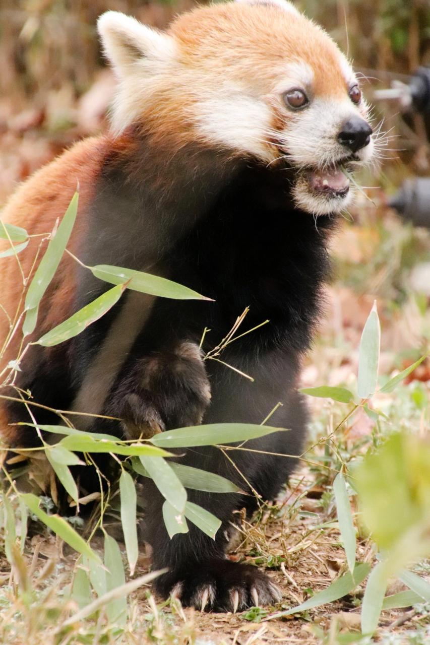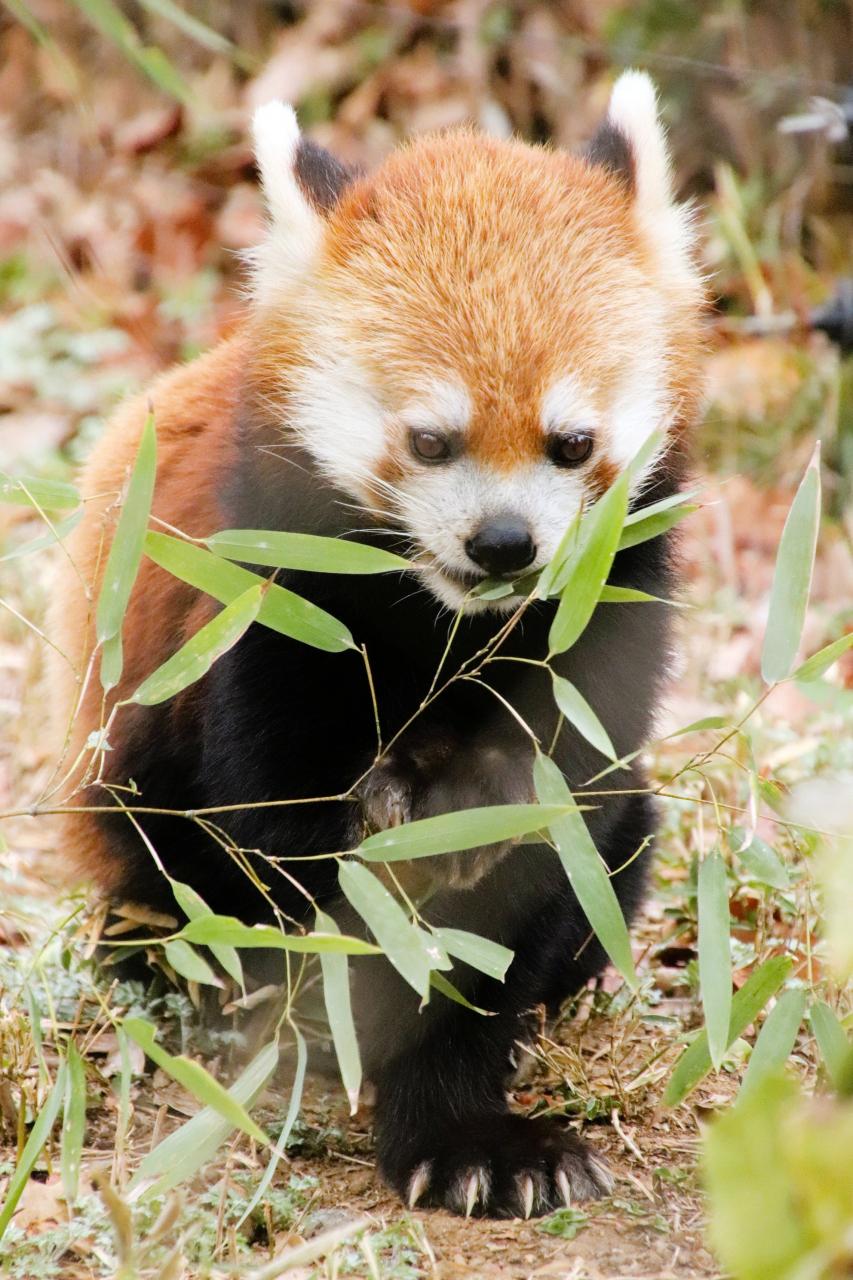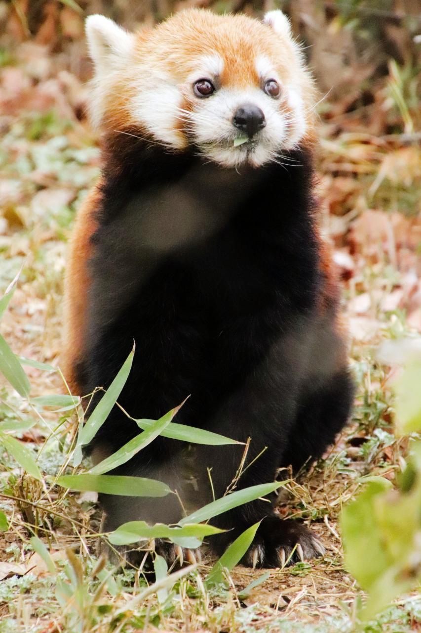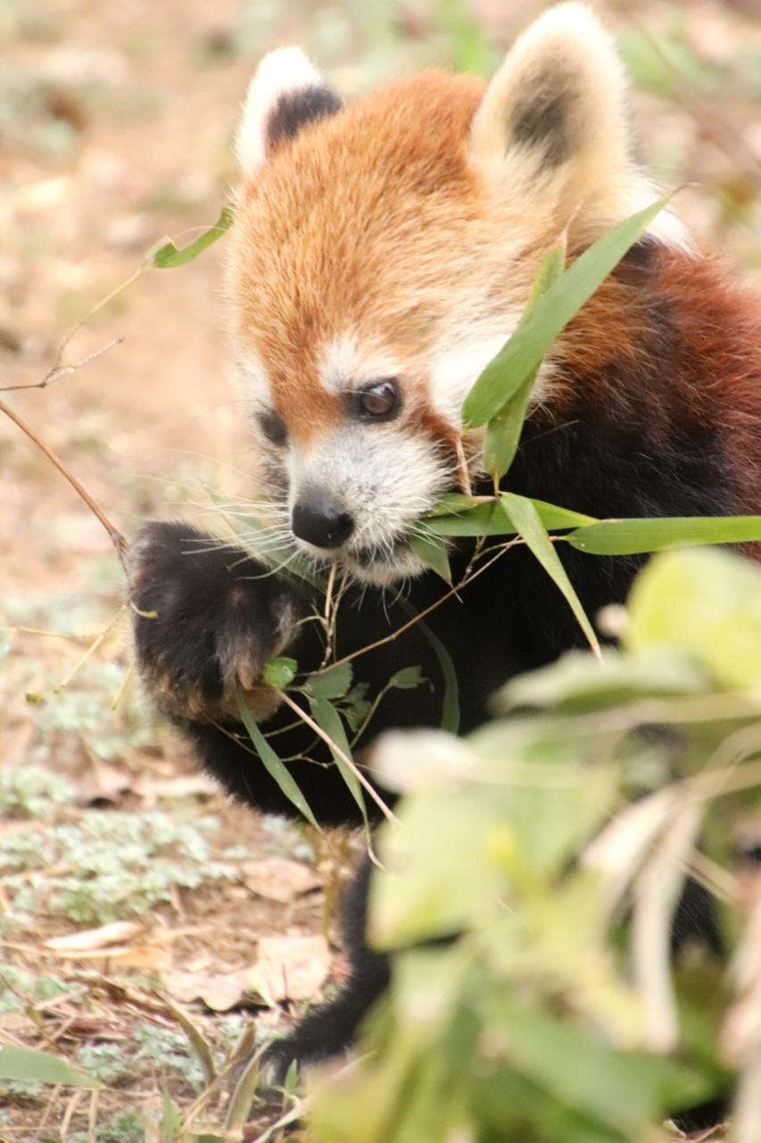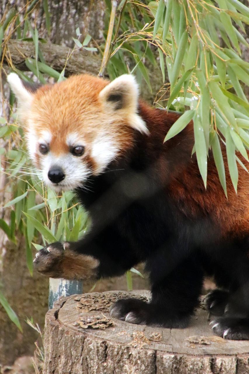 なので今回は、レッサーパンダの写真の収穫はあんまりないかも、と思いながら、近くで持参のパンを食べながら休憩していたら……ココロくんが降りてきて、笹を食べたり、遅ればせながらリンゴを見つけたり、めちゃくちゃフォトジェニックでした!