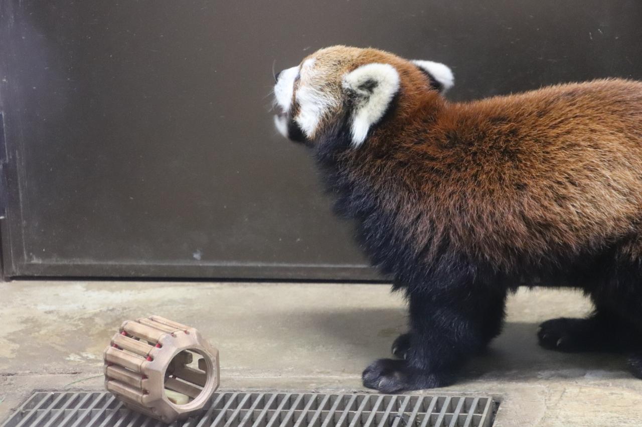 それから「レッサーパンダのおはなし」イベントも、なんとか間に合って、ココロくんのリンゴや笹ごはんタイムや、ハナビちゃんのリンゴのフィーダーチャレンジもなんとか見られました!