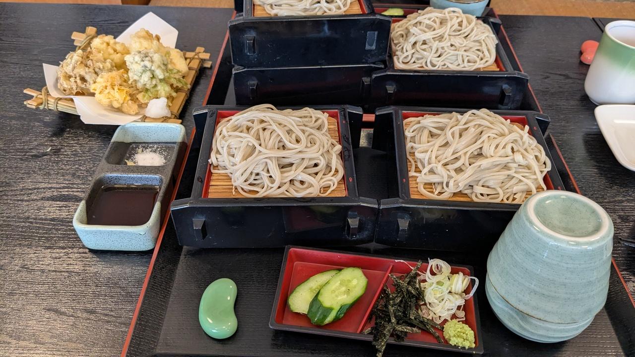 中島屋さんで、お蕎麦ときのこの天ぷら。