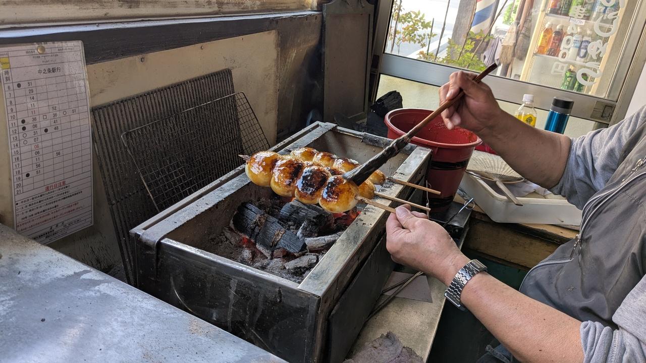 注文を受けてから焼くから少し待つよ。おまんじゅうふっくら。甘い味噌ダレがうまーっ。 -