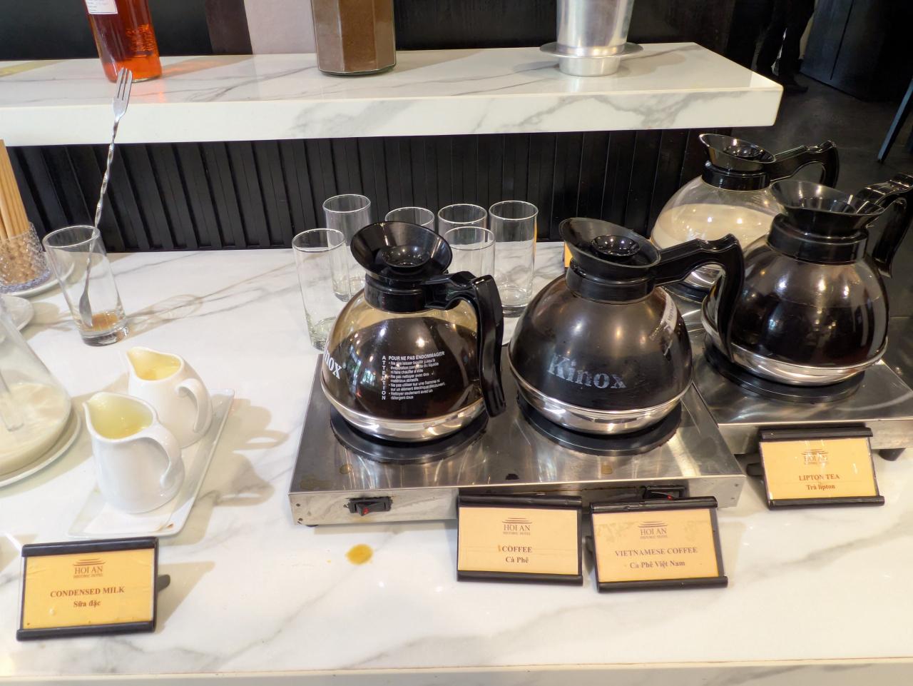 普通のコーヒー以外にベトナムコーヒーもありました。コンデンスミルクも。こちらではコンデンスミルクを入れて甘くして飲むのかな…?