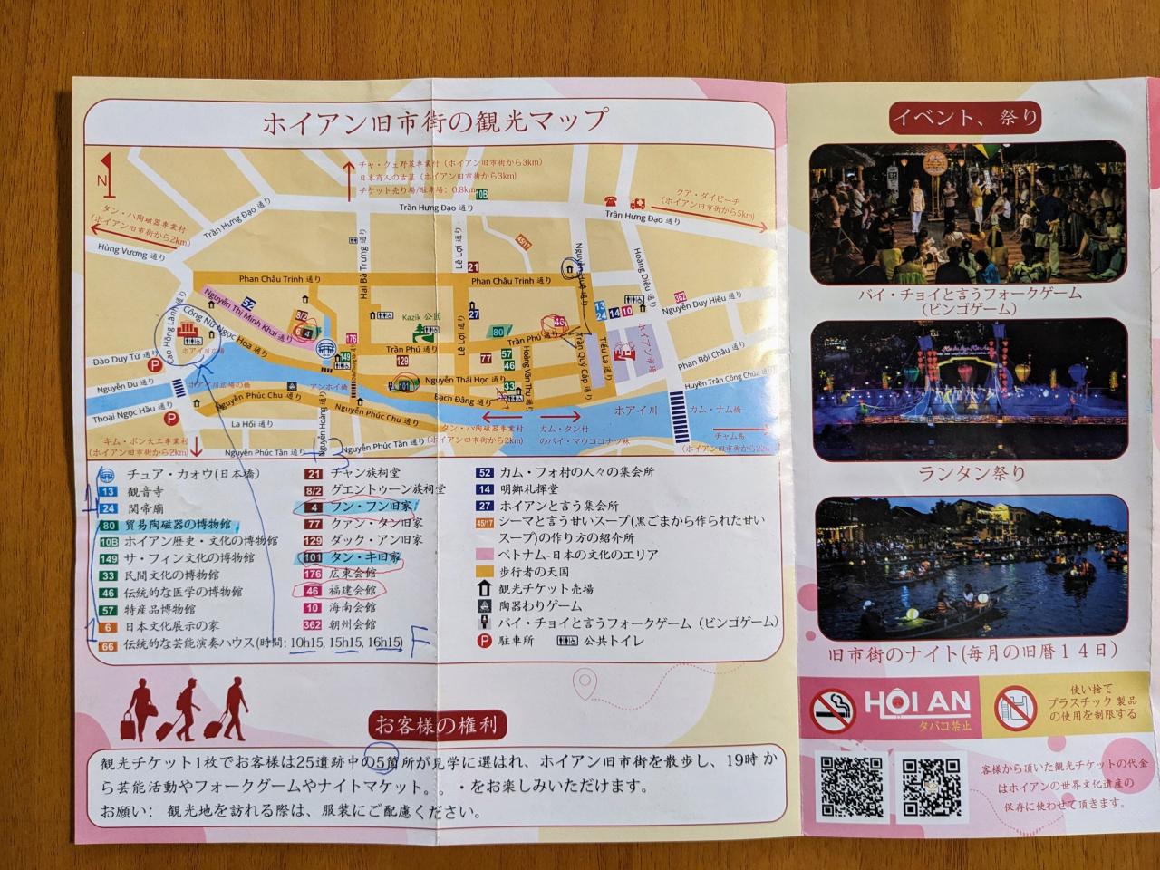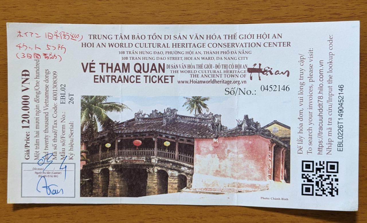 ホイアン旧市街の施設を見学するにはチケットが必要です。ホテルから旧市街へ行く途中にチケット売り場があるので、そこで購入。一人12万ドンで3日間有効。