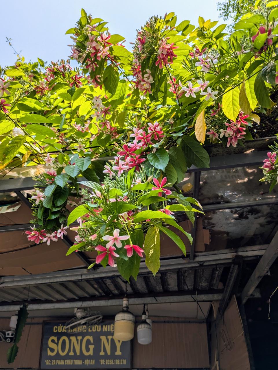 ホイアンでよく見かけるこの花、ブーゲンビリアかと思ってたけど、よく見たら違った…!調べると「使君子(シクンシ)」という花で、咲き始めは白、その後ピンク、赤へと変化するそうです。だからこんなにいろんな色があるのか…!