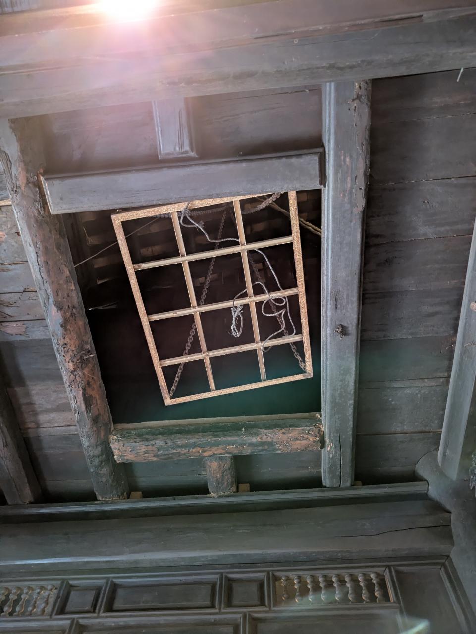 天井には、洪水のときに2階に荷物を運び上げるための格子戸が。