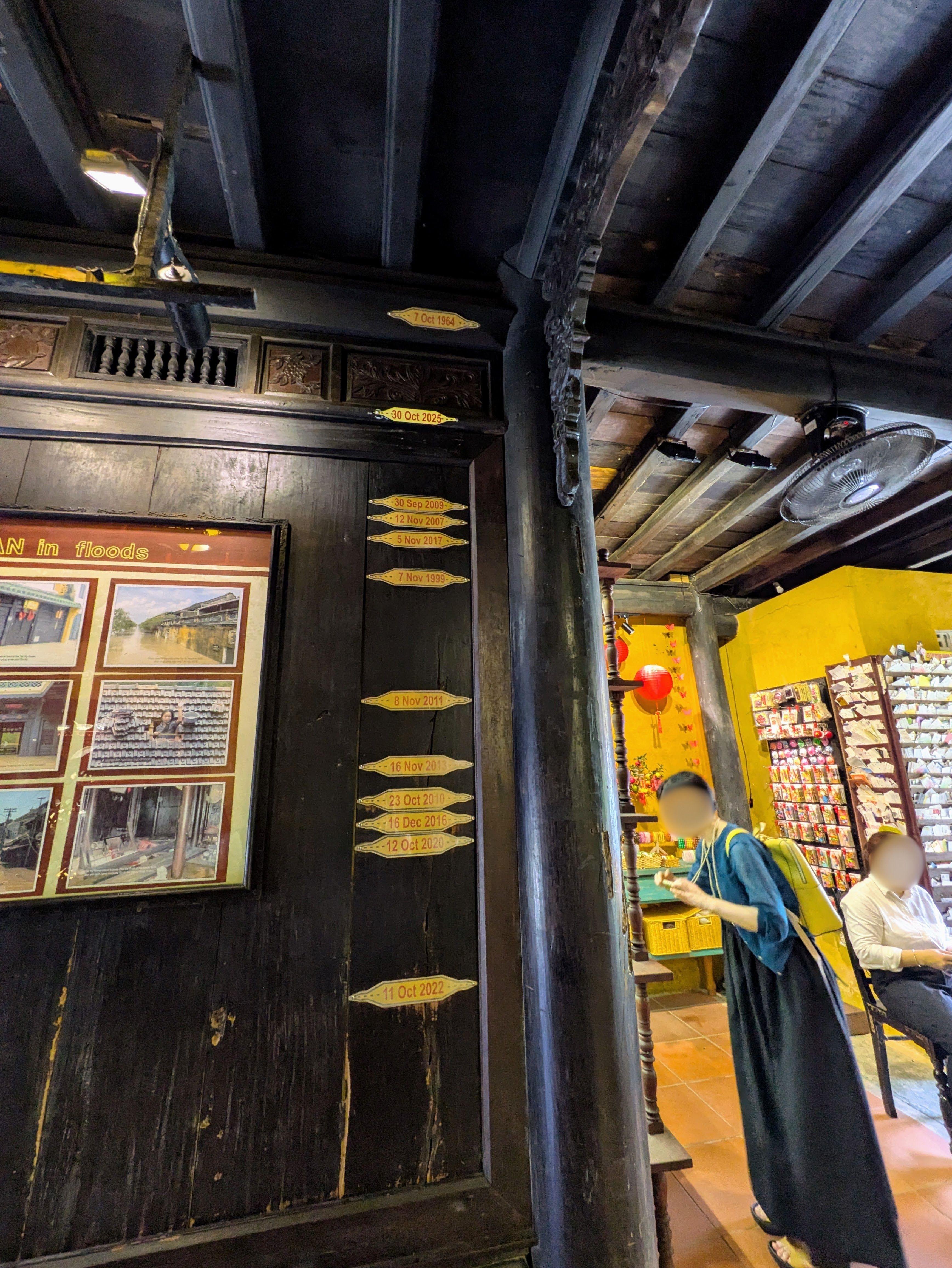 過去の洪水の水位を示す目盛り。天井まで…!