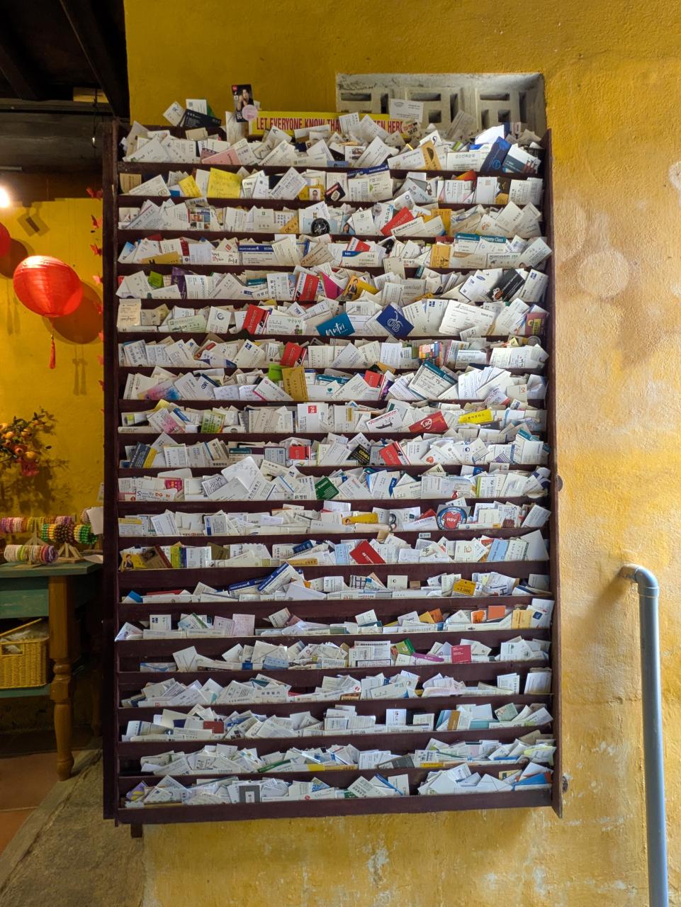 全部名刺です。来場者が記念に置いていったんでしょうね。ざっと見たけど日本語の名刺はありませんでした。見落とした?