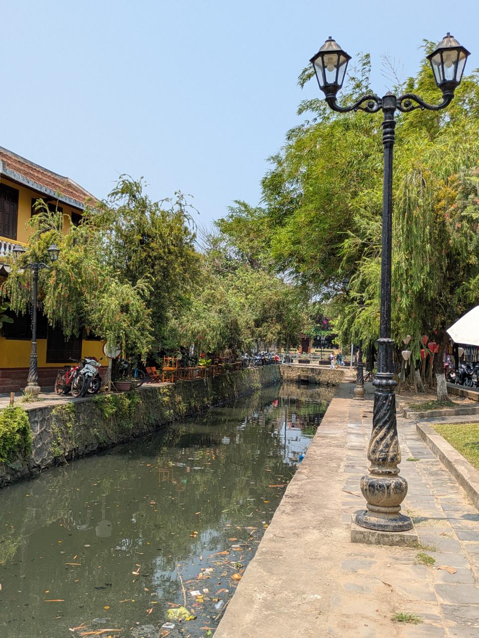 対岸の風景。昨夜は大勢の人が行き交いにぎやかだった川沿いの通りも、昼間は静か。