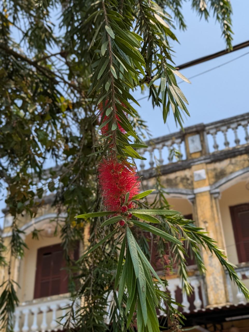 柳かと思ったら、赤い花が咲いていました。ブラシの木だ…!