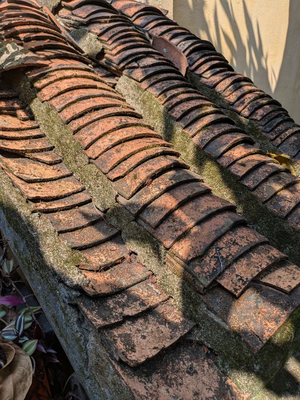屋根瓦ってこんなふうに重なっているんだ